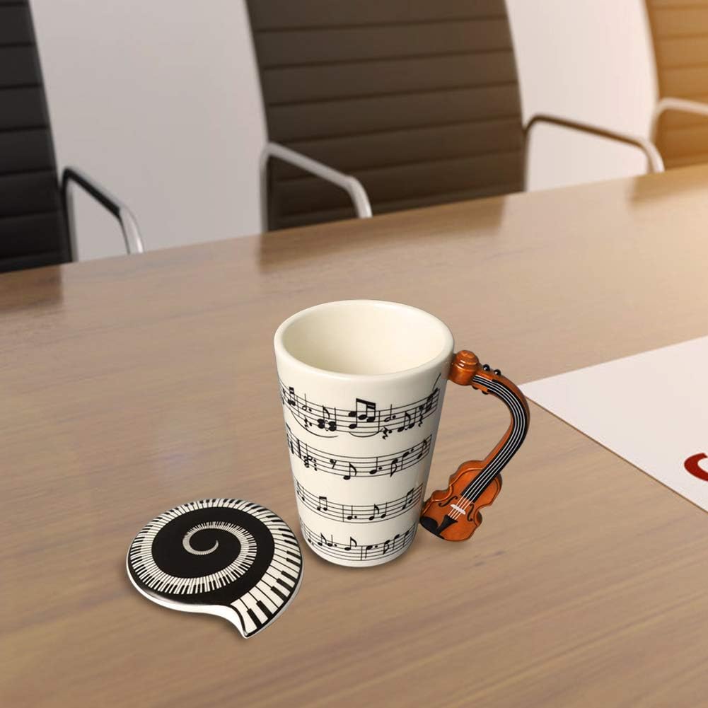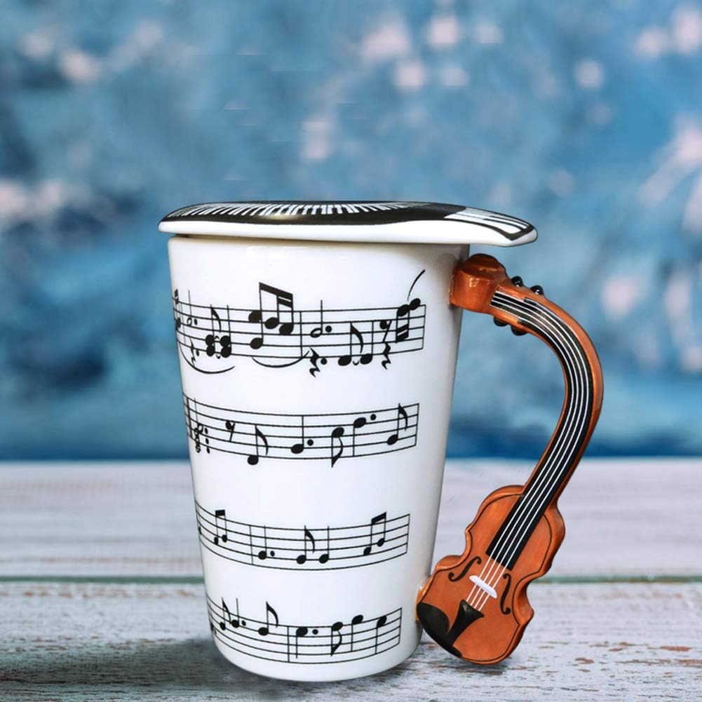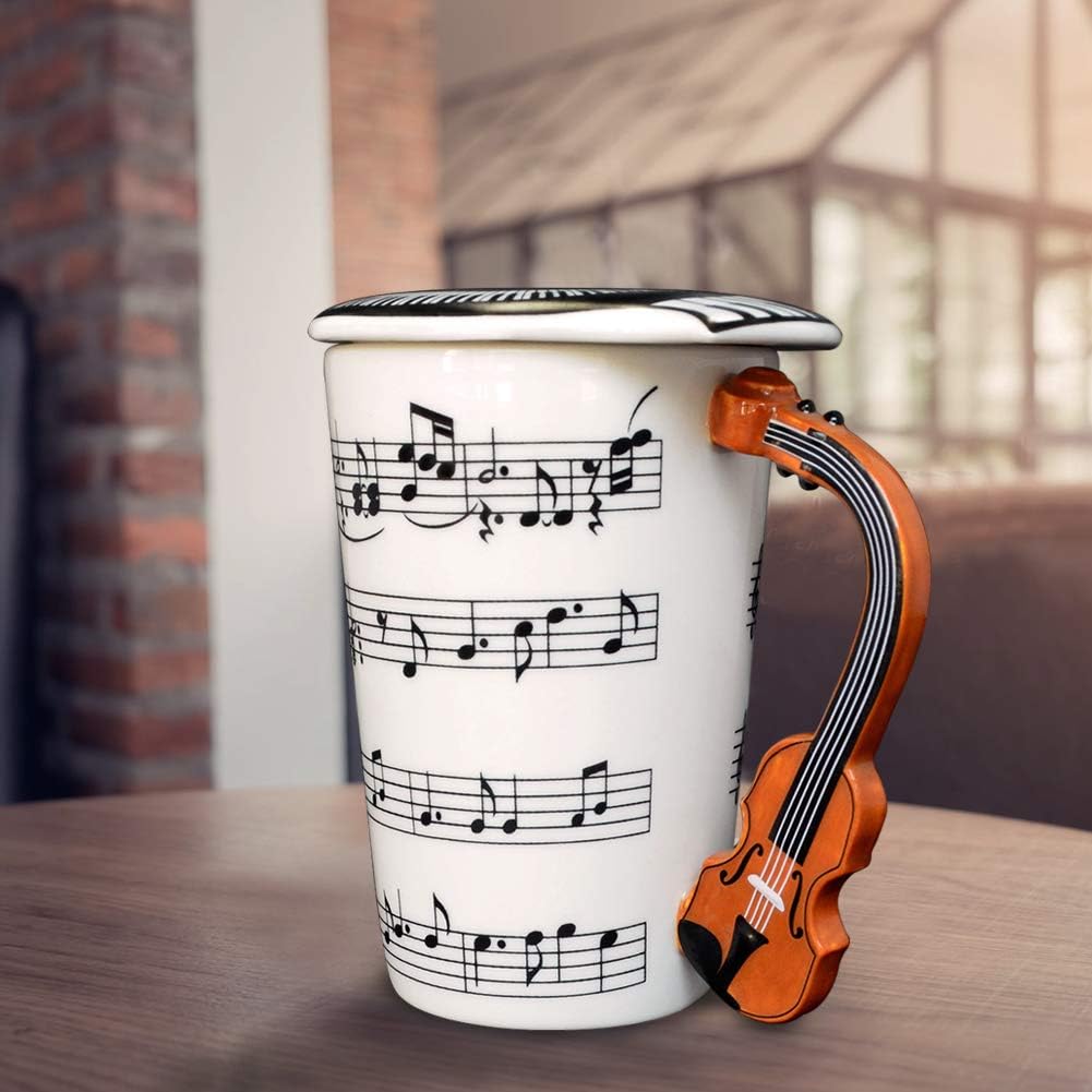 EYMPEU Music Coffee Mug with Lid and Violin Handle,450ML Funny Mug for Coffee,Tea,Water,Gift for Music Lover/Teacher/Friend