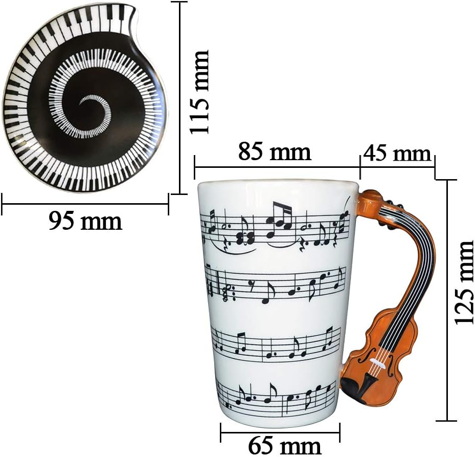 🎻【Creative Design & Delightful Gift】This 450ml white ceramic coffee mug features a charming violin handle, making it a unique novelty mug that appeals to music lovers. A perfect musician gift, music lover gift, or music teacher gift for occasions like birthdays, Christmas, New Year, or housewarming parties.