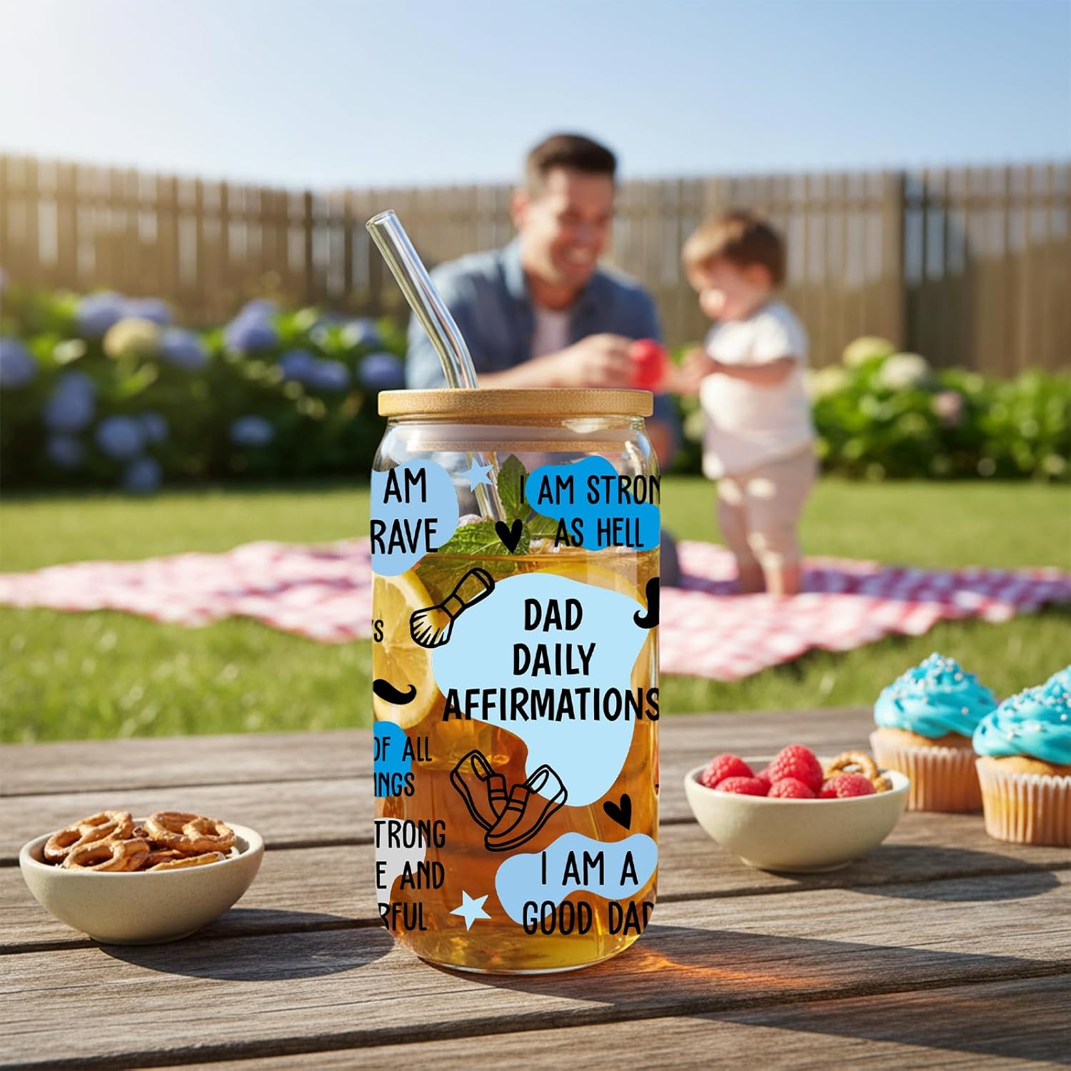 FATHER’S DAY DRINKING GLASSES: Surprise Dad with a unique drinking experience! Beautifully packaged with encouraging phrases, matching lids, reusable straws, and cleaning brushes, this playful glass set makes the perfect Father’s Day gift.