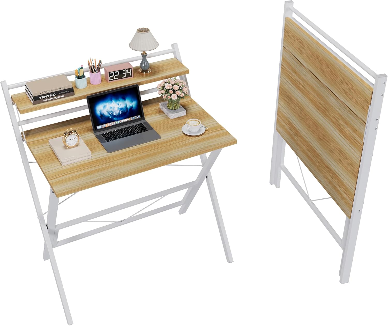 Folding Desk with Monitor Stand, 80 cm Foldable Computer Desk, Small Study Desk Easy Assembly for Small Spaces and Home Office Brown