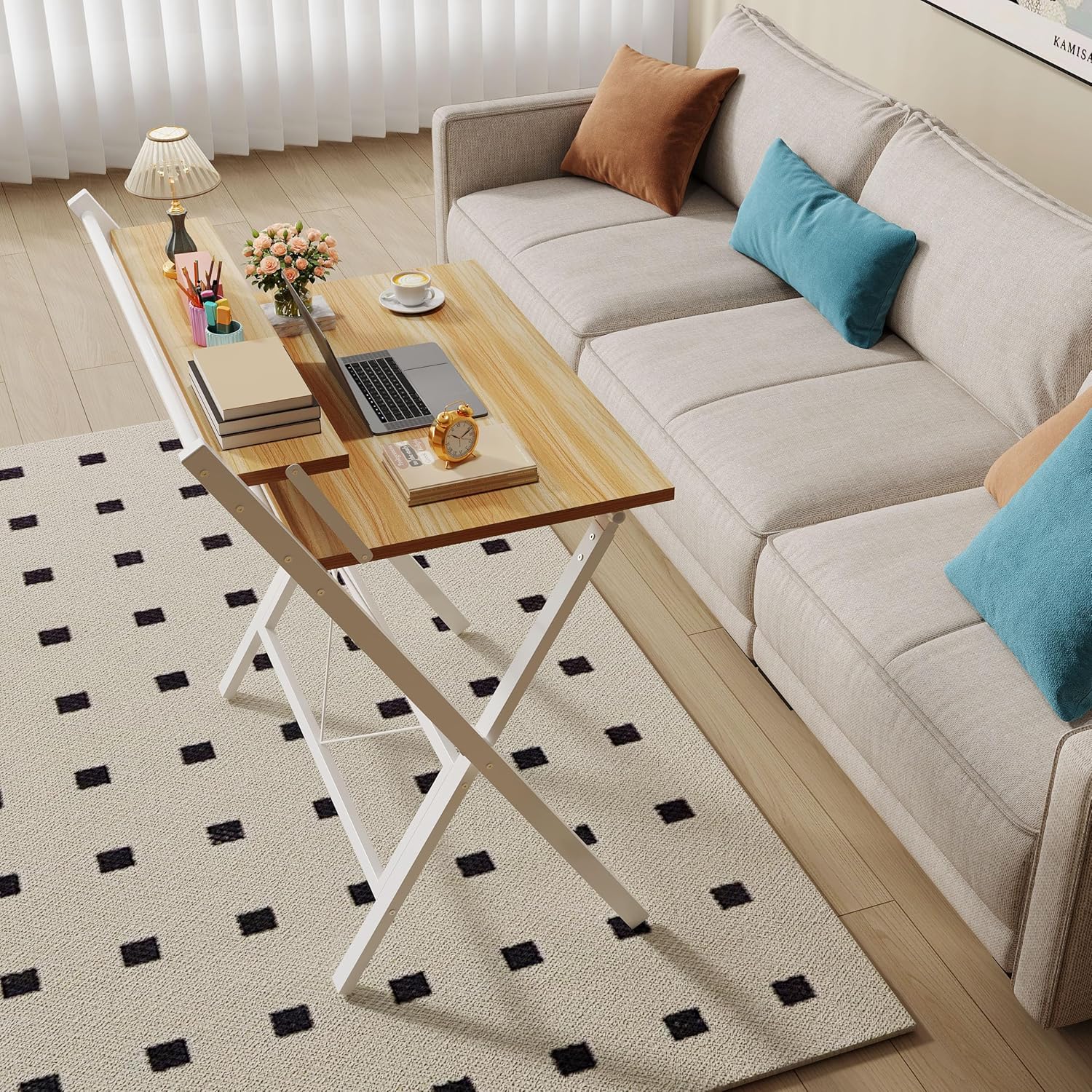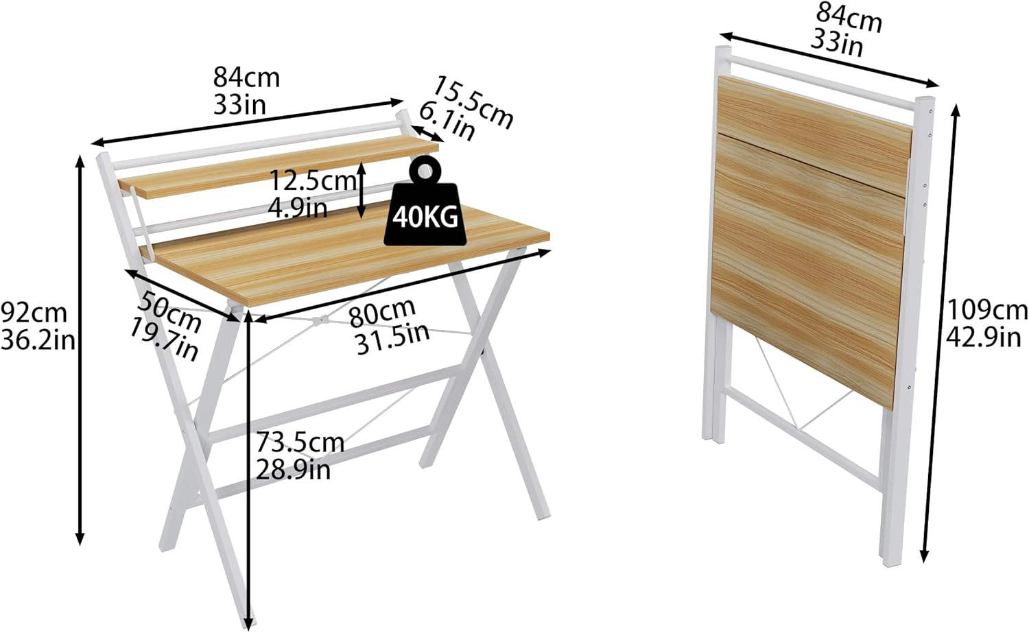 Compact and Portable: The 80*50 tabletop is perfect for small spaces. Despite its small size, the desk offers a generous desktop space and ample leg space, which ensures the use of comfort