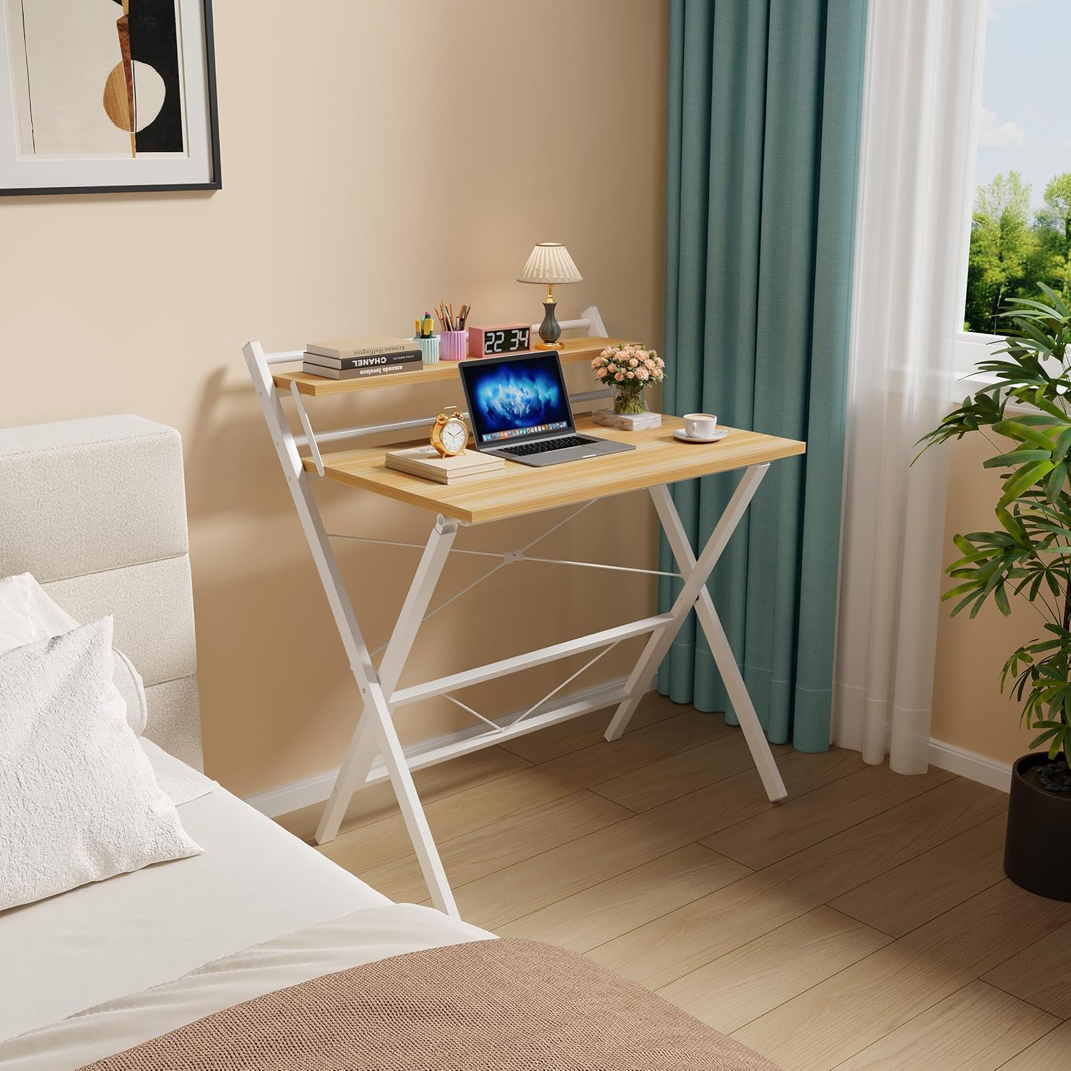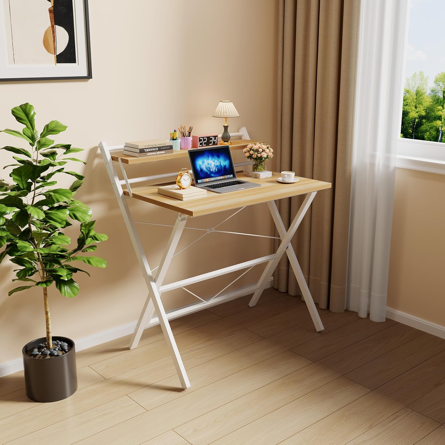 Reinforced X-shaped Frame: The metal frame with added crossbars of this computer table enhances load capacity up to 150 lb, ensuring reliable support and safe everyday use, whether working or studying