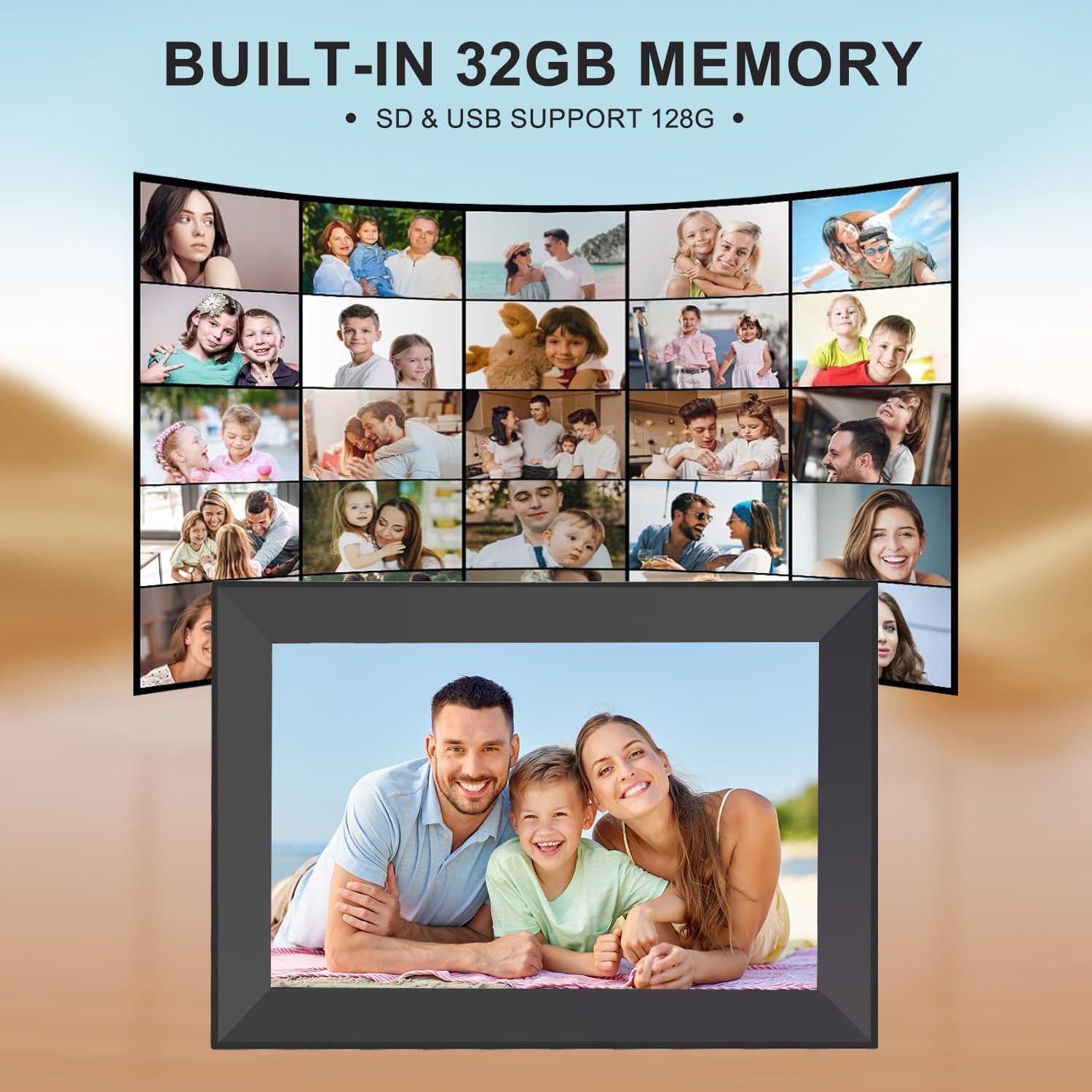 Vivid 10.1″ HD IPS Touchscreen: Enjoy your memories in stunning detail on a 10.1-inch IPS display with 1280*800 HD resolution and wide viewing angles. Superior color fidelity ensures every photo looks vivid and true-to-life. The responsive 10-point capacitive touchscreen lets you easily swipe, zoom, adjust brightness, and control settings with just a tap