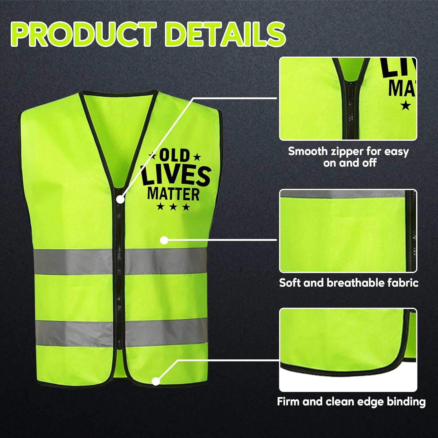 High Quality Material: Made of durable polyester, this vest is lightweight, breathable, making it perfect for all-day and all-night wear. The fluorescent green vest is easy to match with other outfits.