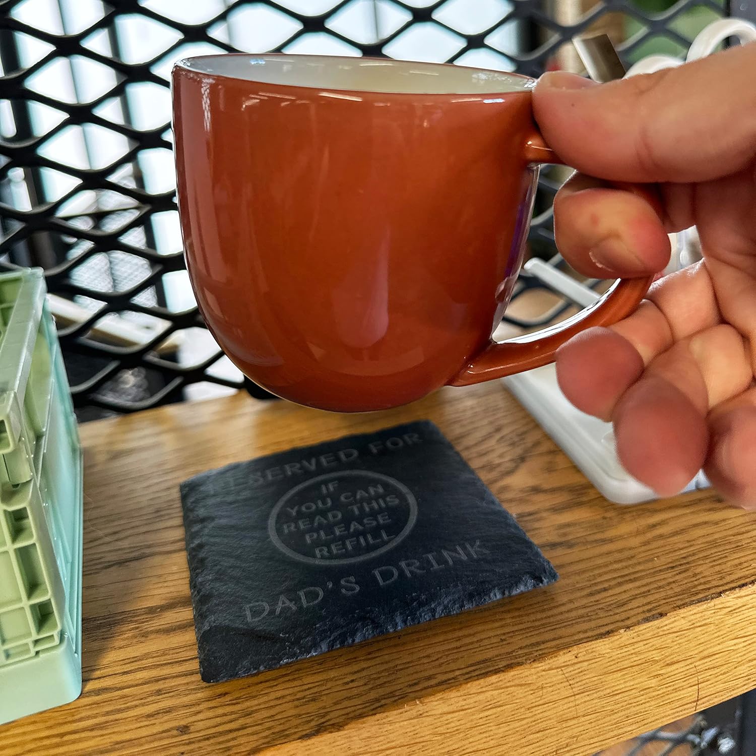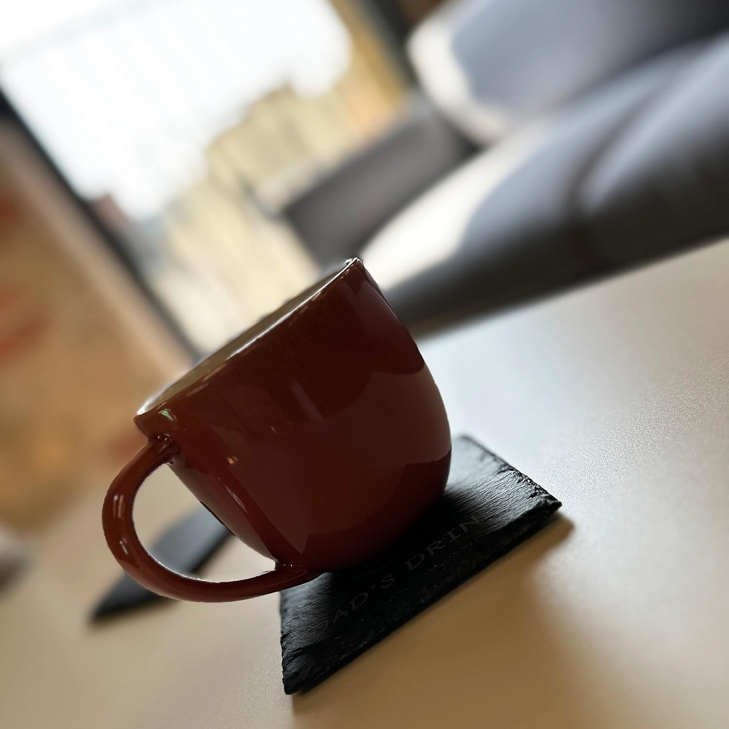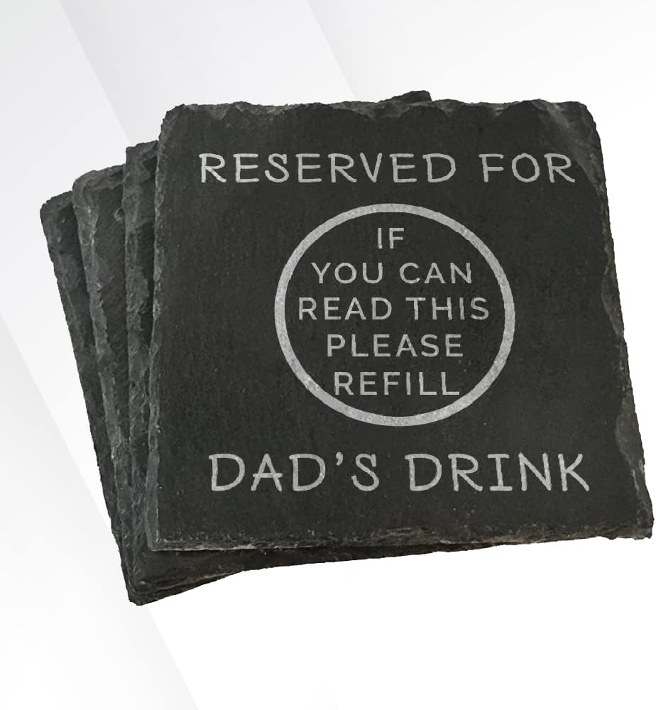 Whether used in the comfort of your dad’s favorite chair, on his desk, or during family gatherings, this coaster serves as a reminder that his drink spot is reserved and that a refill is always welcome. It adds a personal touch to his relaxation time or work environment and is sure to bring a smile to his face every time he reaches for a sip.