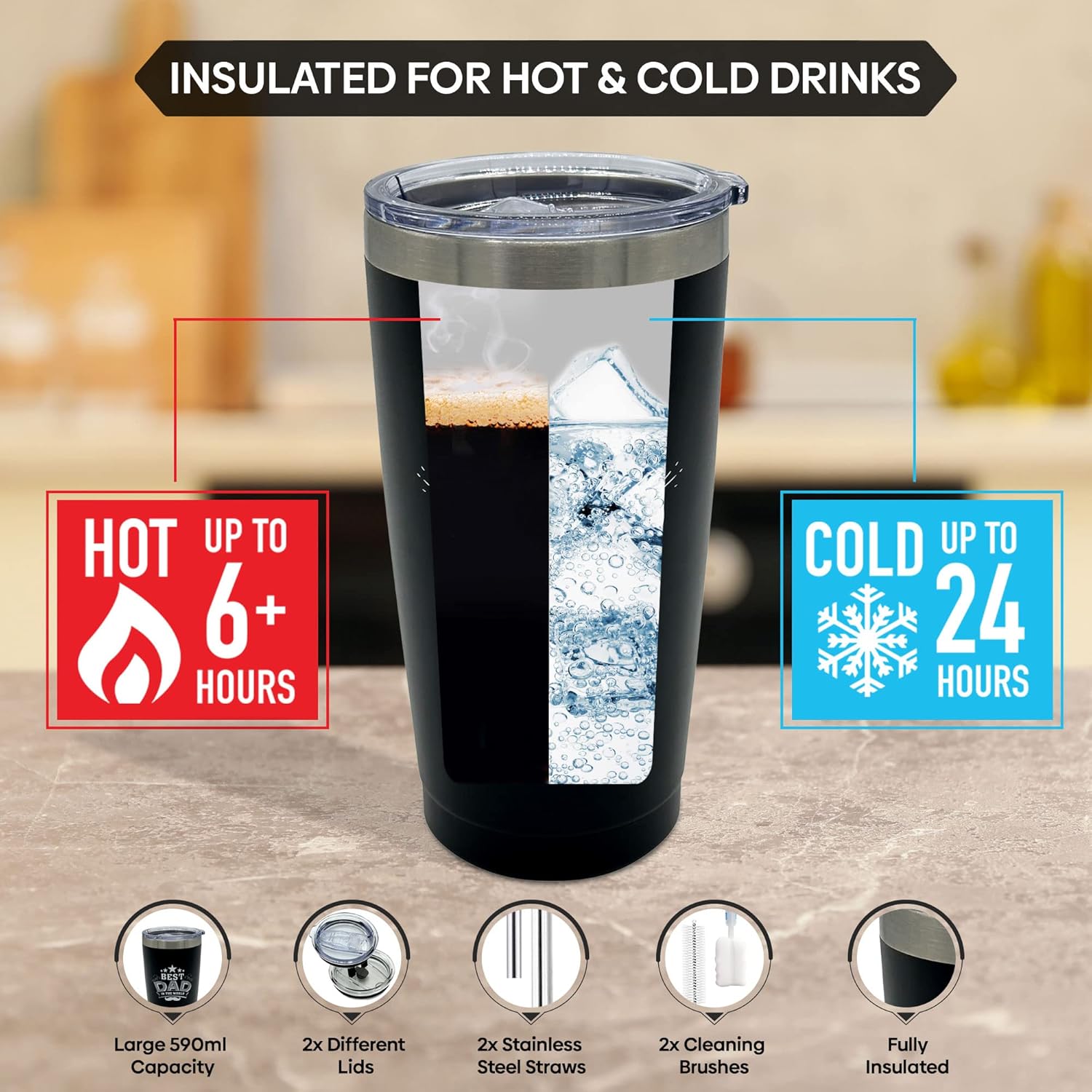 Keeps Hot Drinks Hot & Cold Drinks Cold!