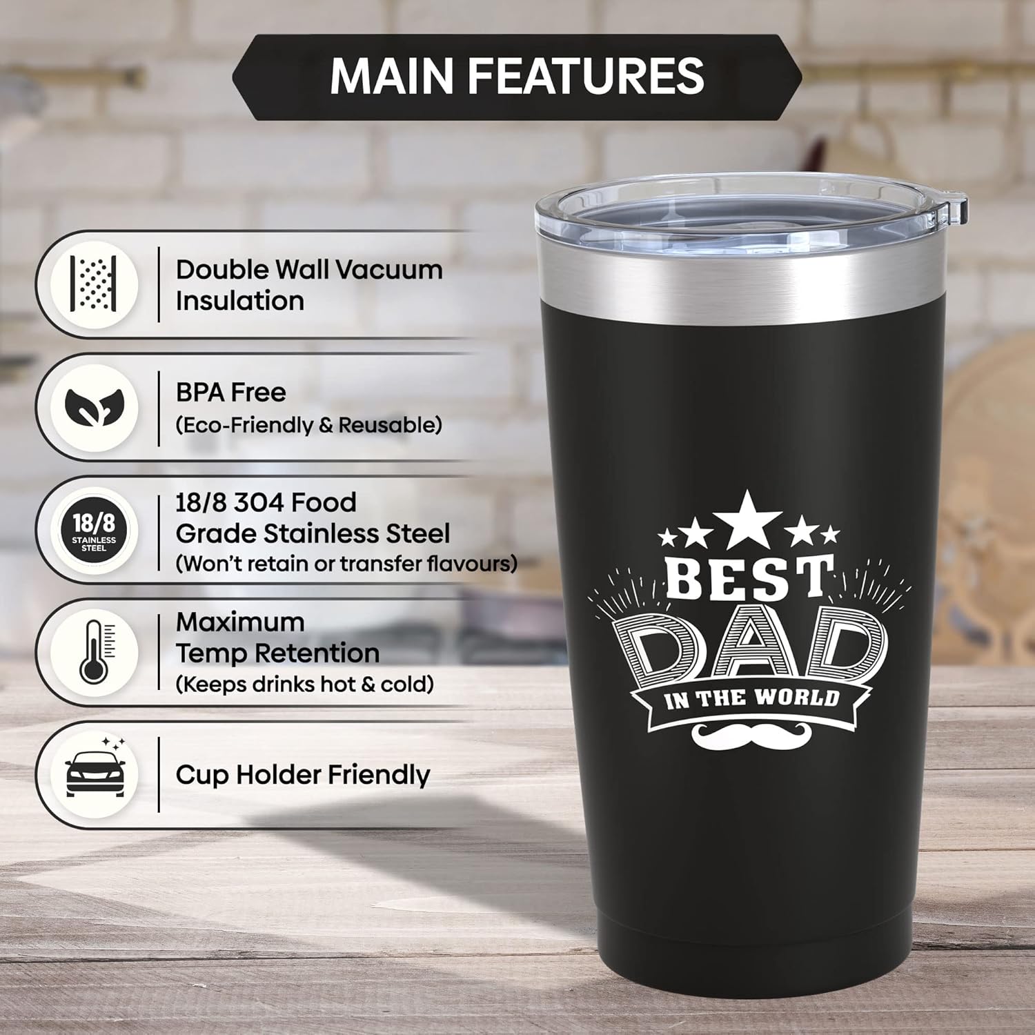 Make Christmas Day special this year with this Top Dad 20oz insulated stainless steel drinks flask. A reliable and practical accessory for anyone who wants to enjoy their favourite beverages while on the go. With a capacity of around 600ml, this flask is perfect for carrying your hot or cold drinks, whether you’re commuting to work, hiking, or camping.
