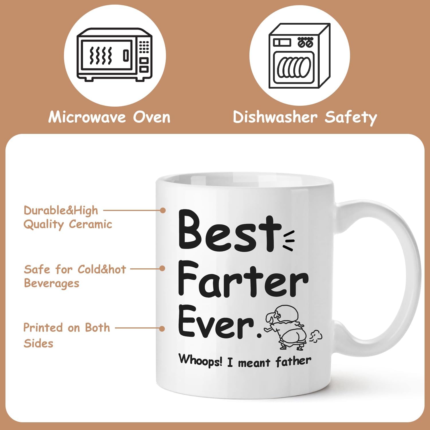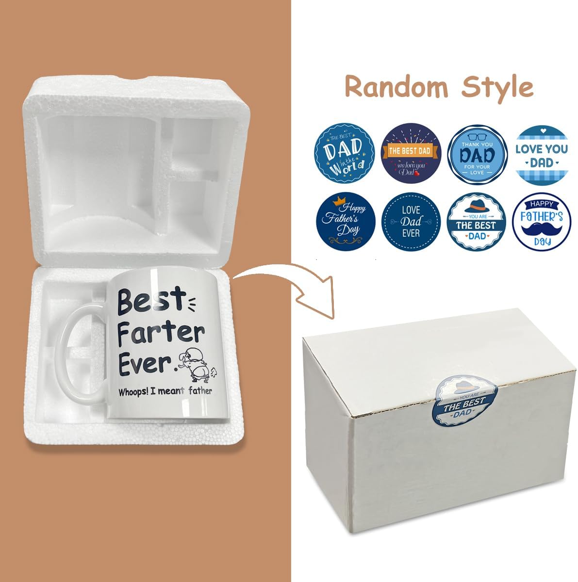 Shatter Resistant Package: Double layer foam packaging can effectively prevent the mug from being damaged. Featuring cute Father’s Day slogans sealing sticker on the surface, let you demonstrate your careful preparation on Father’s Day or Dad’s birthday.