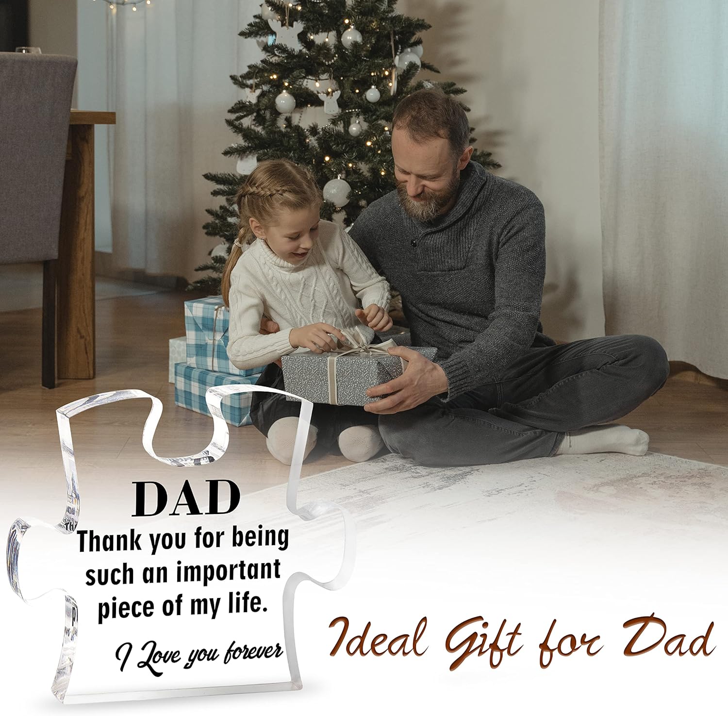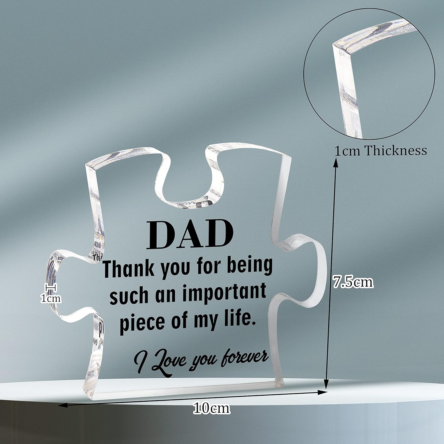 Let Dad know how much you love him with this puzzle piece featuring heartwarming text. It is a thoughtful Father’s Day gift, birthday gift, Christmas gift, Thanksgiving gift, anniversary gift and Valentine’s Day gift for Dad.