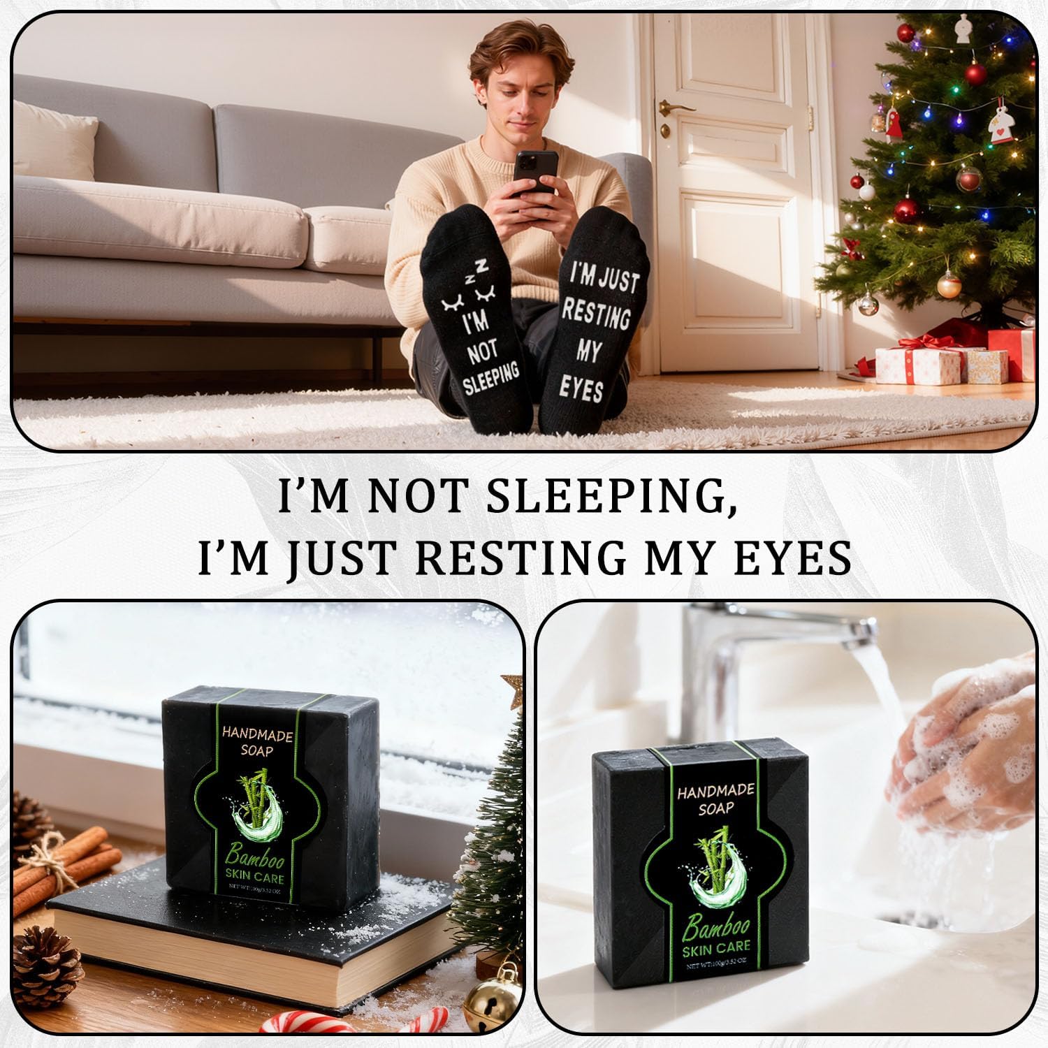 🧦Funny Socks That Match His Sense of Humor – Every hardworking man deserves a good laugh. These black cotton socks feature the witty phrase “I’m Not Sleeping, I’m Just Resting My Eyes”, perfect for naps after a long day or relaxed weekends on the couch. Soft, breathable, and stretchable, they combine comfort with humor. A great conversation starter and a must-have for men who enjoy both comfort and comedy. Give him a reason to kick back and smile — literally!