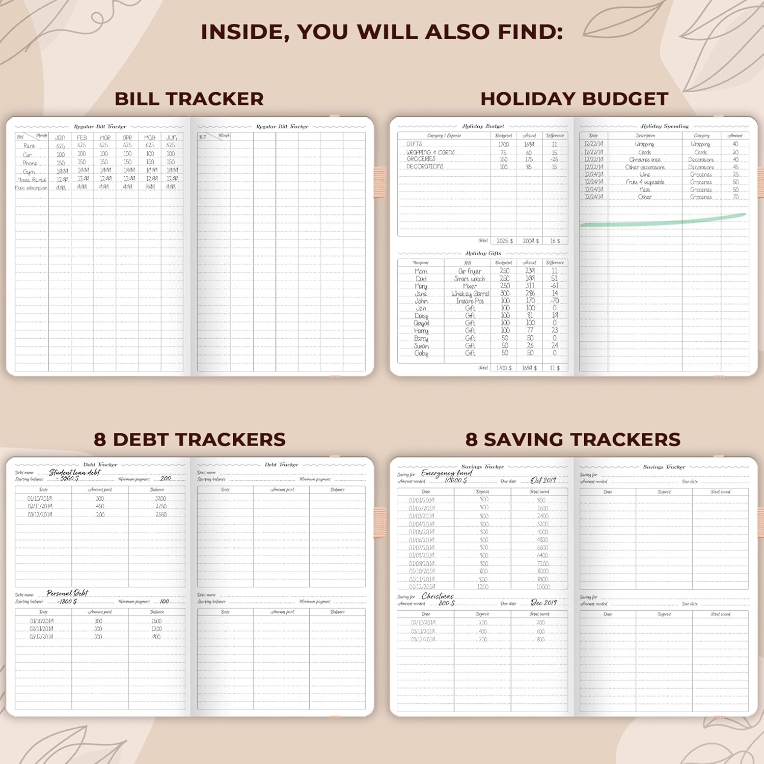 PERSONAL FINANCE & BUDGETING MADE EASY – Each month, set monthly goals, add reminders of upcoming purchases, bills and payments, make a monthly budget, and track your spending using a dedicated expense tracker.