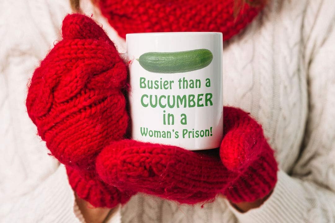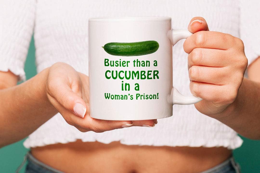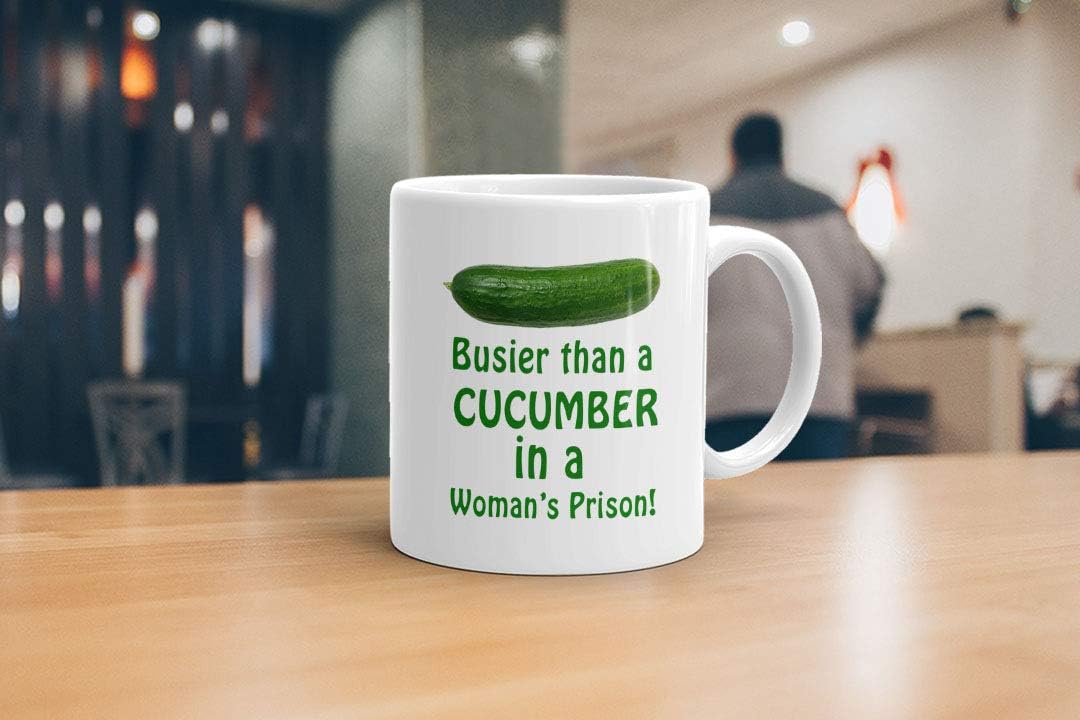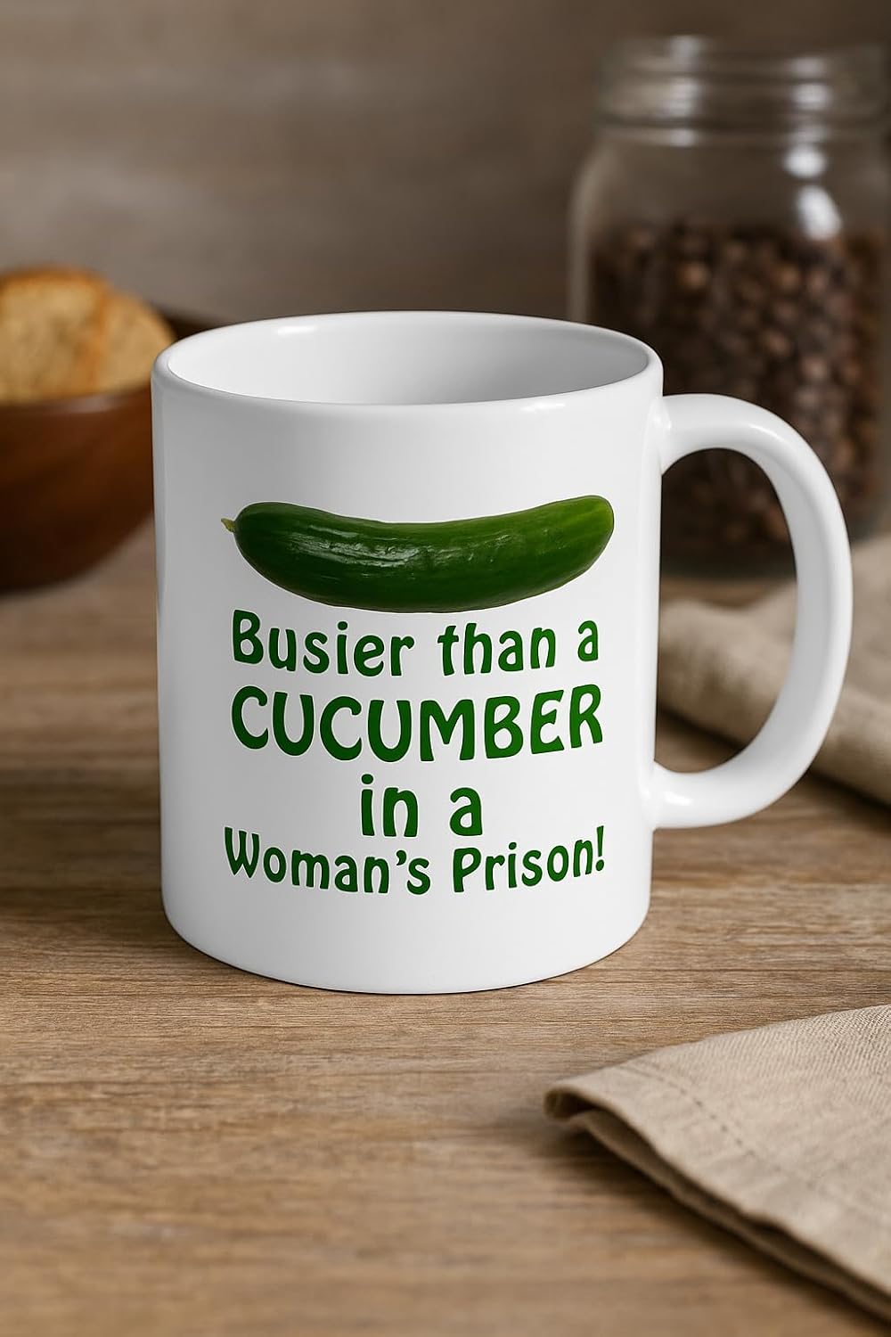 RUDE & HILARIOUS GAG GIFT: This cheeky mug brings bold humor with its wild “Cucumber in a Woman’s Prison” quote. Ideal for those who love edgy jokes and adult humor.