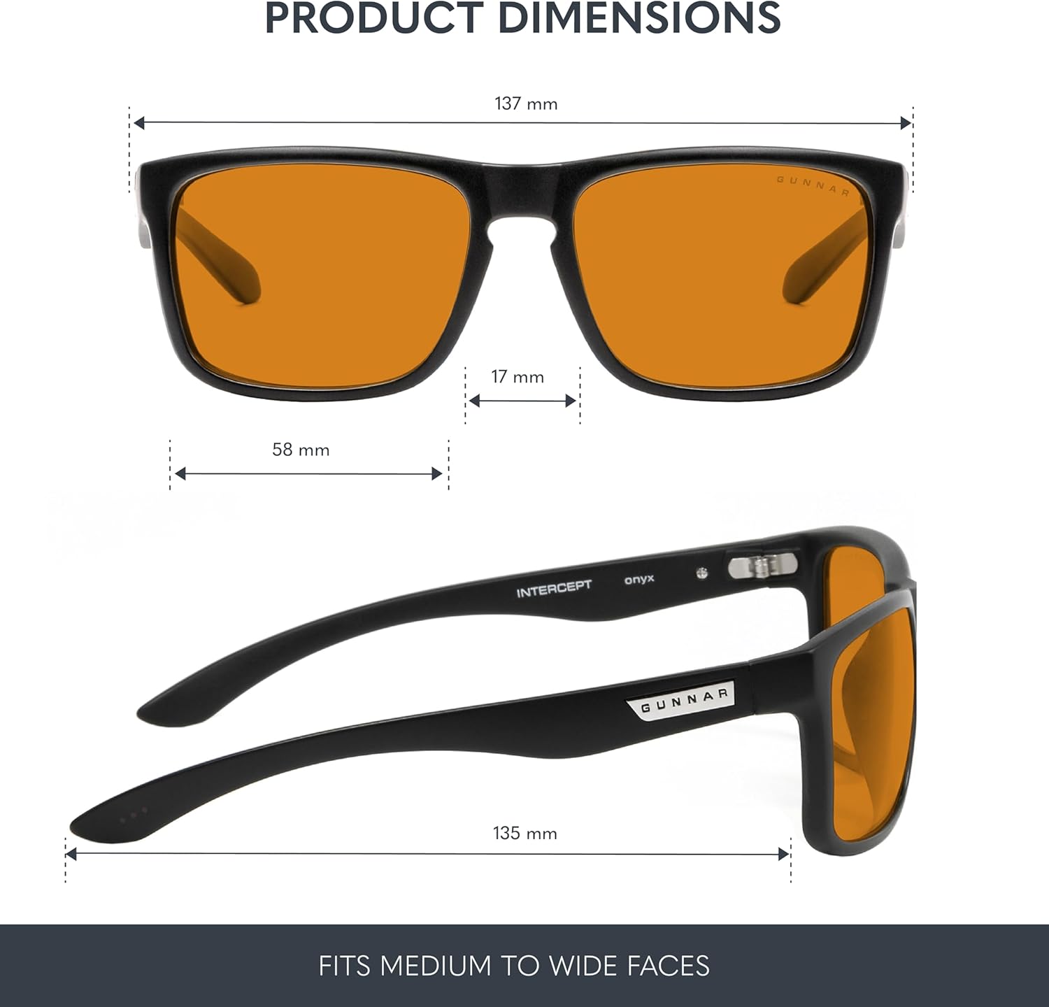 * INTERCEPT completes the line between style and science| INTERCEPT improves performance while viewing tablets, smartphones, TV & computers to reduce digital eye strain, fatigue and headaches| KEY FEATURES: Amber MAX gives Maximum 98% blue light protection! Adjustable silicone nose pads. Wide format lens. * GUNNAR produces the only blue light blocking computer and gaming glasses with Patented Lens (#9417460) Technology that is recommended by doctors to protect and enhance your vision.
