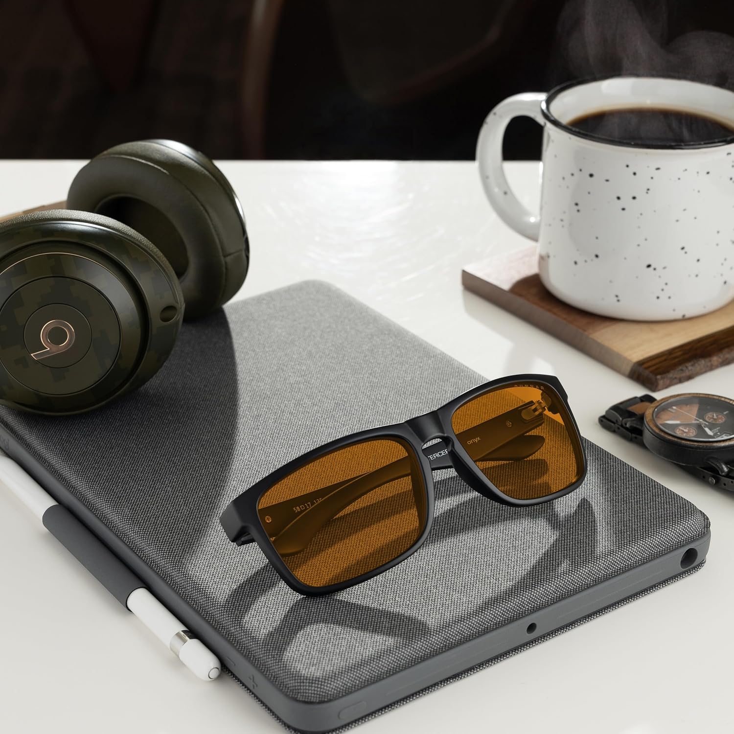 * GUNNAR improves performance while viewing tablets, smartphones, TV & computers to reduce digital eye strain, fatigue and headaches. Wide format lenses for full eye coverage – Curved nose rest for even weight distribution – Reduce Eye Strain – minimize headaches, dry eye and eye fatigue with added amber lens contrast, anti reflective coatings and patented focusing power 0.20 mag. Premium Acetate Finish. Performance Nylon Lens. Flexible 3-barrel Hinge