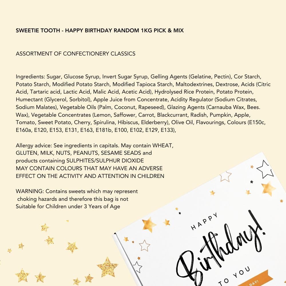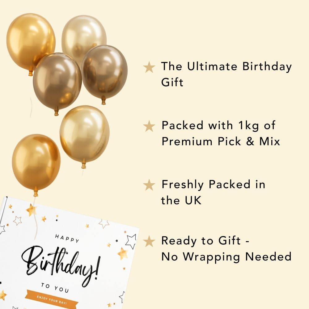 🛍️ Inside Your Box: 1kg of premium assorted sweets, wrapped with care, and presented in the signature Sweetie Tooth birthday gift box. While the mix varies, the quality and delight remain consistent.