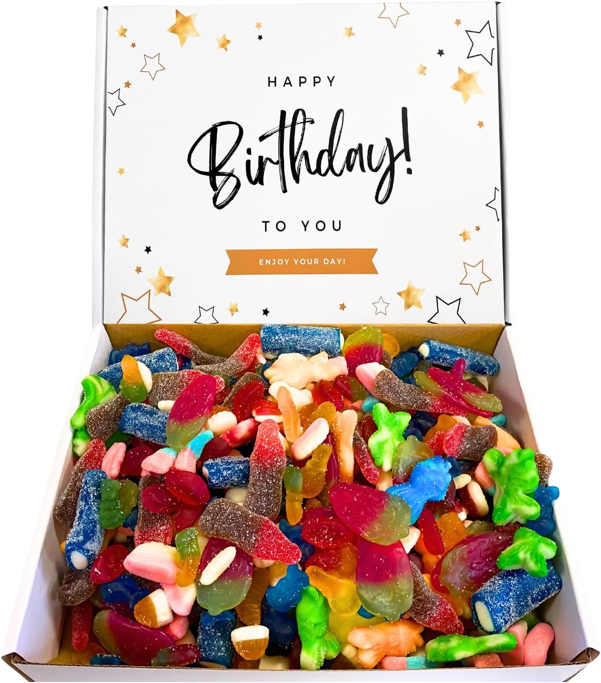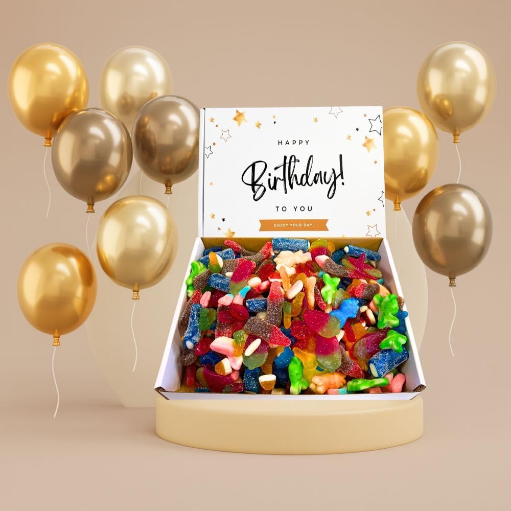 Introducing the Sweetie Tooth Premium Happy Birthday Gift Box — the perfect example of sweet celebrations! This elegantly designed box, radiating birthday cheer, encloses a kilogram of handpicked, gourmet sweets, offering a delightful mystery with every bite. From tangy gummies to classic confections and rare treats, every piece is a unique taste adventure. Bridging the age gap with its universal appeal, it’s perfect for sweet lovers from 5 to 95. With a strong commitment to quality, each candy is curated to be free from harmful additives, ensuring that you not only savor sweetness but also trust its purity. This box isn’t just about delectable surprises; it promises shared moments of joy, laughter, and a sprinkle of nostalgia, making it more than just a gift — it’s an unforgettable experience. Whether you’re hosting a grand birthday bash or looking for the perfect gift, trust Sweetie Tooth to capture the spirit of celebrations in every box. Order today and elevate every birthday to an occasion of stylish sweetness!