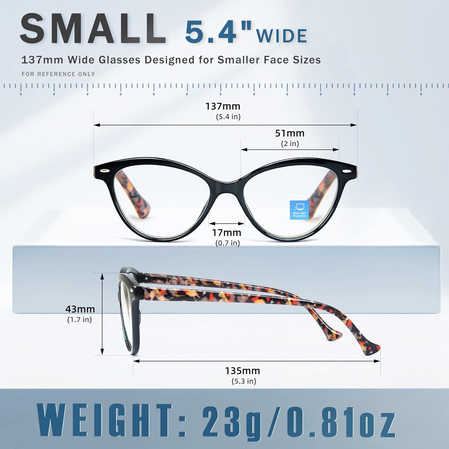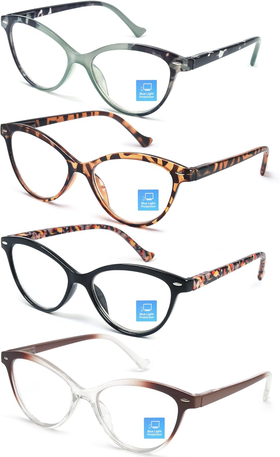 【Stylish Cateye Design For Women】:Cat eye anti blue light reading glasses specially designed for women’s eye contour.Suitable for any face shape.Retro vintage cat-eye shape design and smooth frame curvature bring a special sense of fashion, it can be worn in a variety of occasions, suitable for people of different ages.