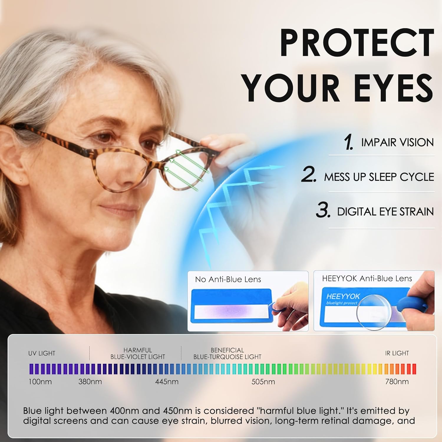 HEEYYOK blue blocking reading glasses make screen time more comfortable and help eliminate symptoms of digital eyestrain.