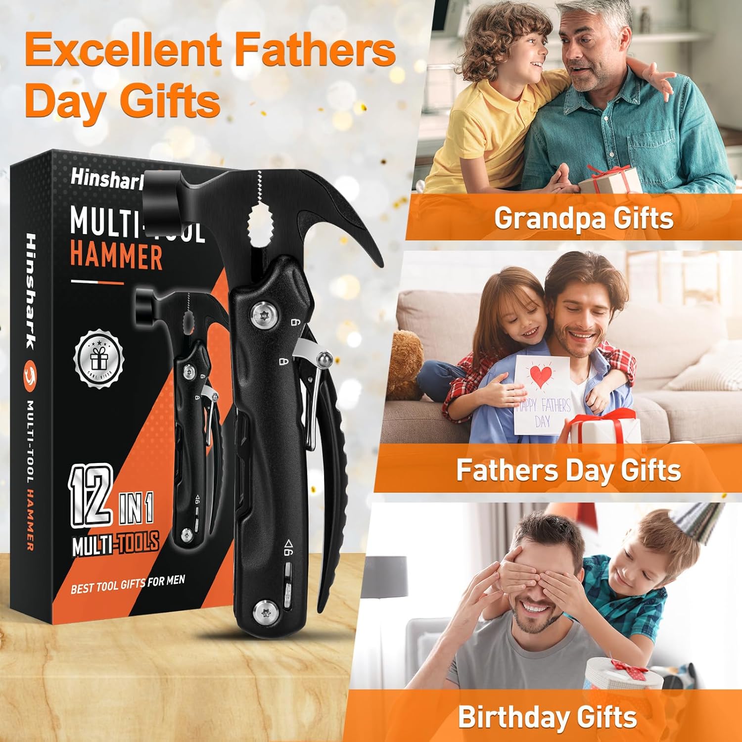𝙋𝙚𝙧𝙛𝙚𝙘𝙩 𝙂𝙞𝙛𝙩𝙨 𝙛𝙤𝙧 𝙈𝙚𝙣 – Hinshark multi-tool has 12 functions, a handy multi-tool for men that is a perfect gift idea. Great for fathers day gifts, birthday gifts, mens gifts for christmas, secret santa gifts, stocking fillers gifts, valentines day gifts, Give it to husband, dad, grandpa, boyfriend, this men’s day gifts will make him smile and bring joy to your gift giver