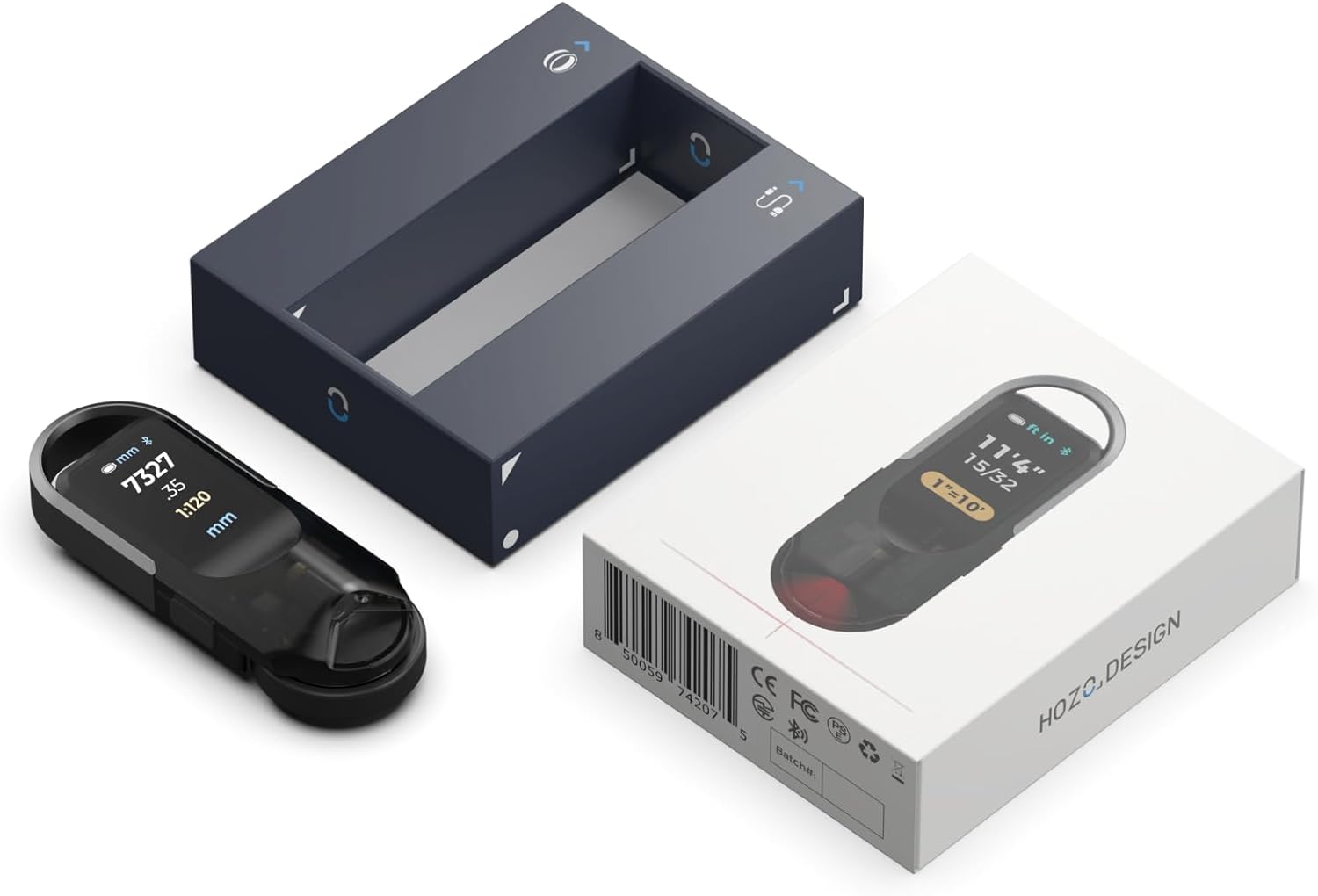The HOZO NeoRulerGO is a digital tape measure designed for measuring flat and curved surfaces, odd shapes, and long distances with precision.