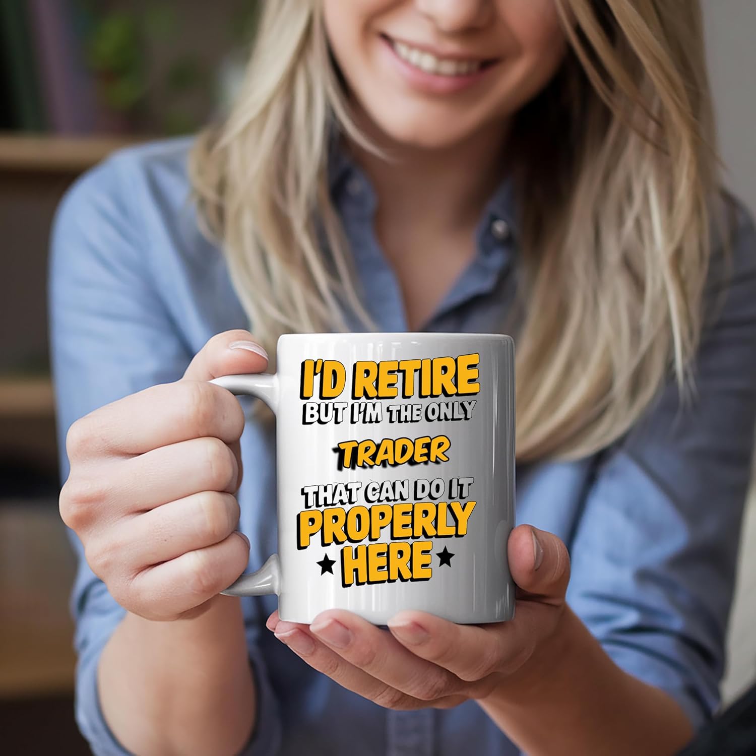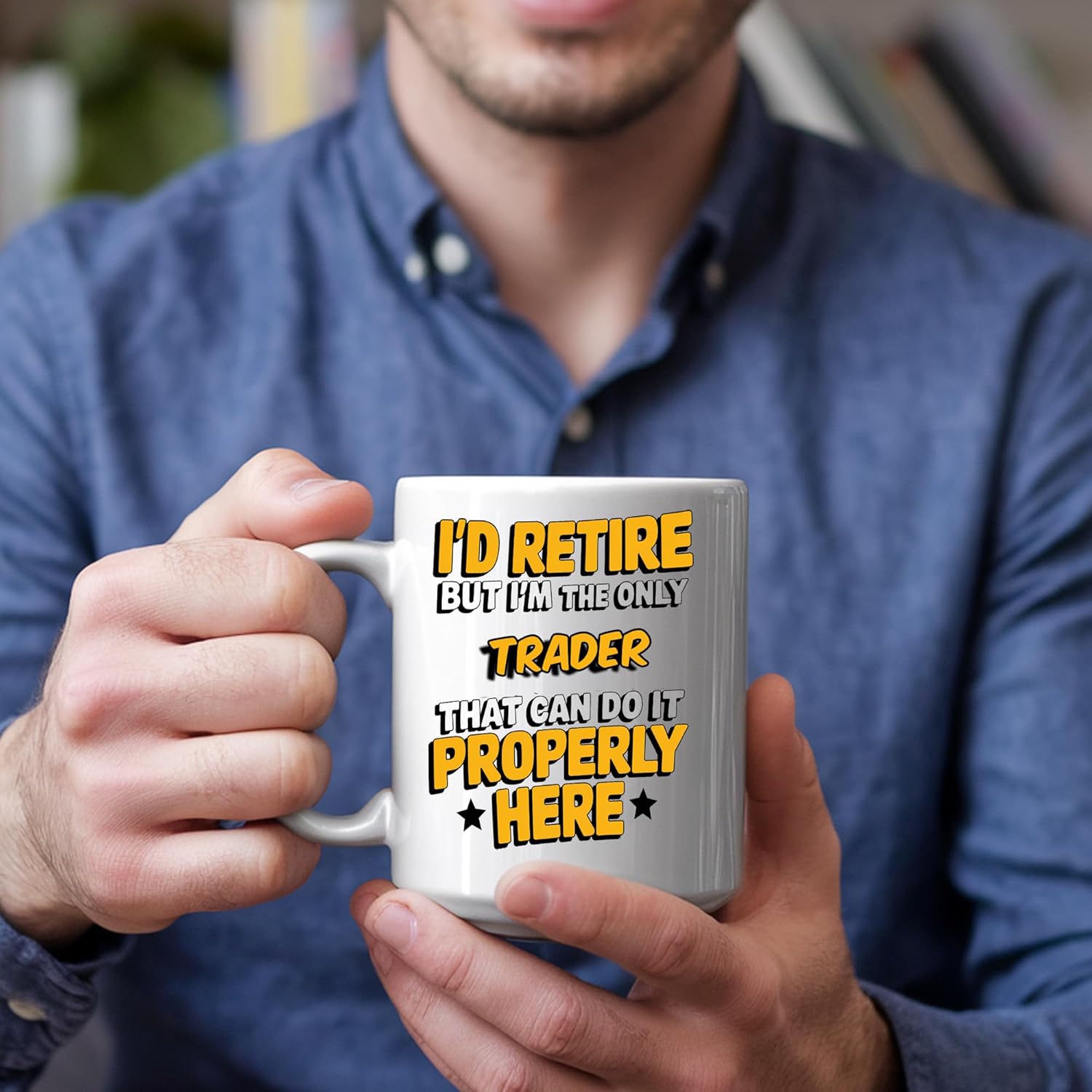 Put a humorous spin on workplace excellence with the “I’d Retire But I’m The Only Trader That Can Do It Properly Here” Funny Mug! Durable ceramic construction ensures it’s microwave and dishwasher safe, making this 11-ounce mug ideal for daily enjoyment. A fantastic gift to delight your favourite Trader, whatever the occasion!