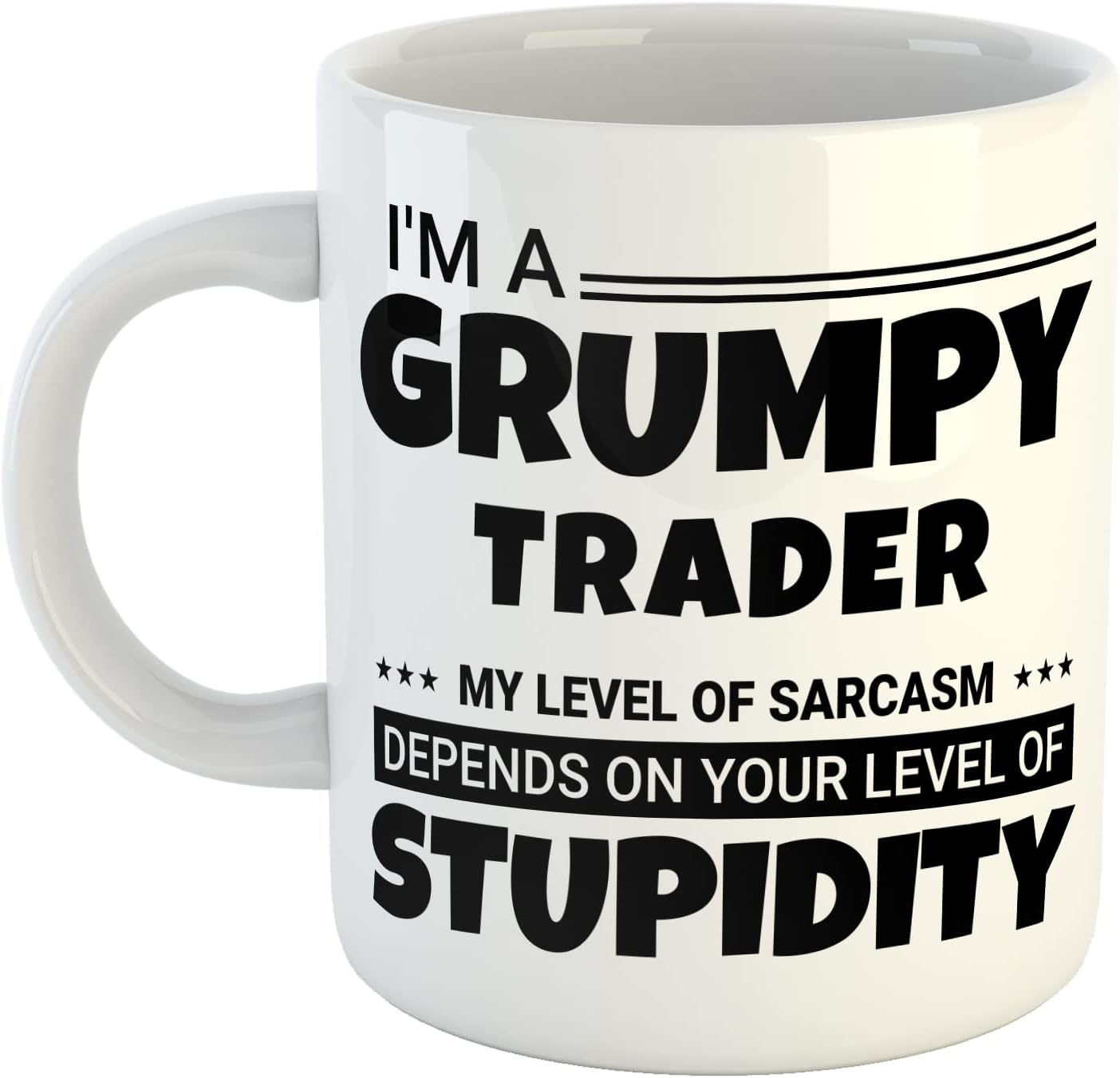 I’m a Grumpy Trader My Level of Sarcasm Depends on Your Level of Stupidity White Ceramic Hand Printed Mug
