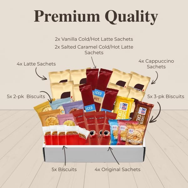 Ideal Gift For Coffee Lover-This carefully curated coffee set includes x4 Latte, x4 Cappuccino, x2 Vanilla Latte, x2 Caramel Latte & x4 Original Coffee Sticks&coffee biscuits