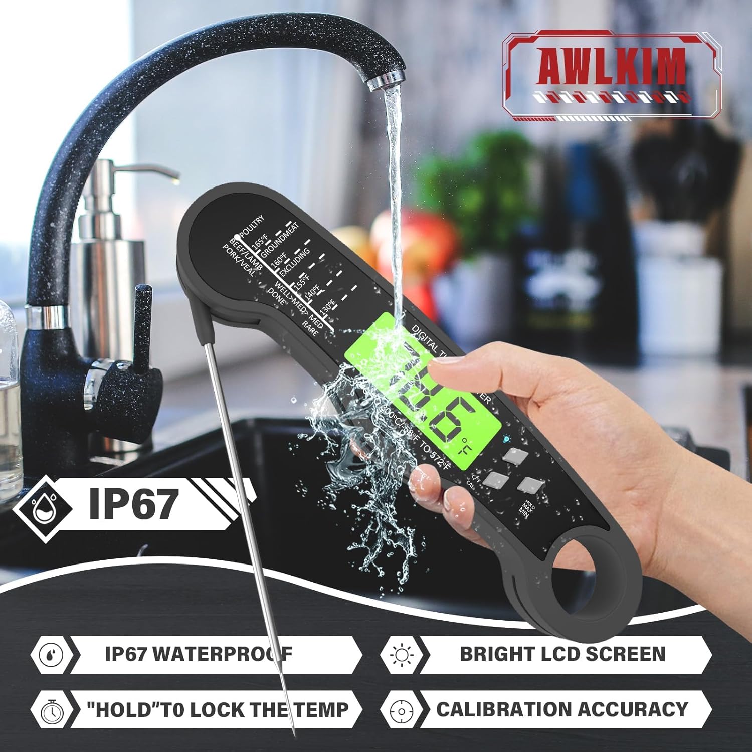 Is the AWLKIM Digital Meat Thermometer waterproof?