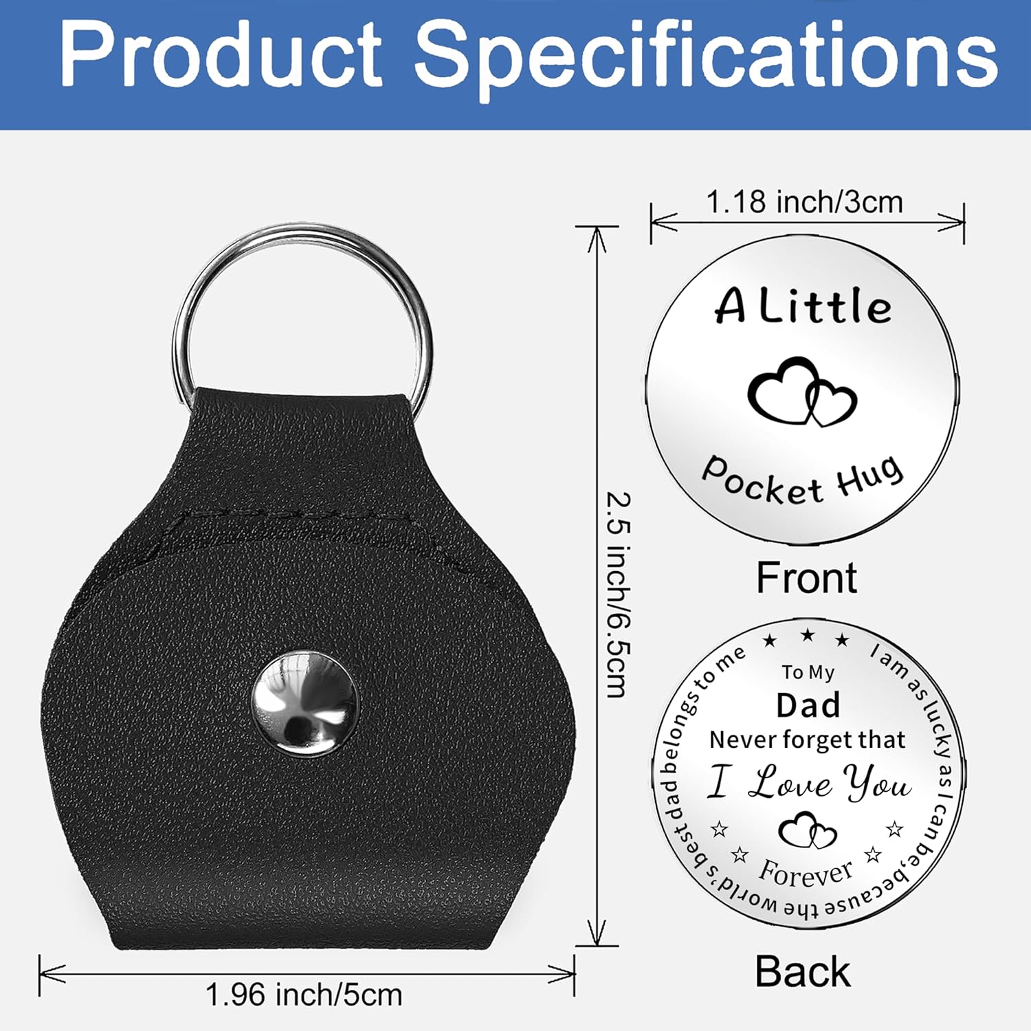 JMIMO Dad Gifts Pocket Hug Token for Dad Fathers Day Christmas Birthday Gifts Keyring with Leather Case