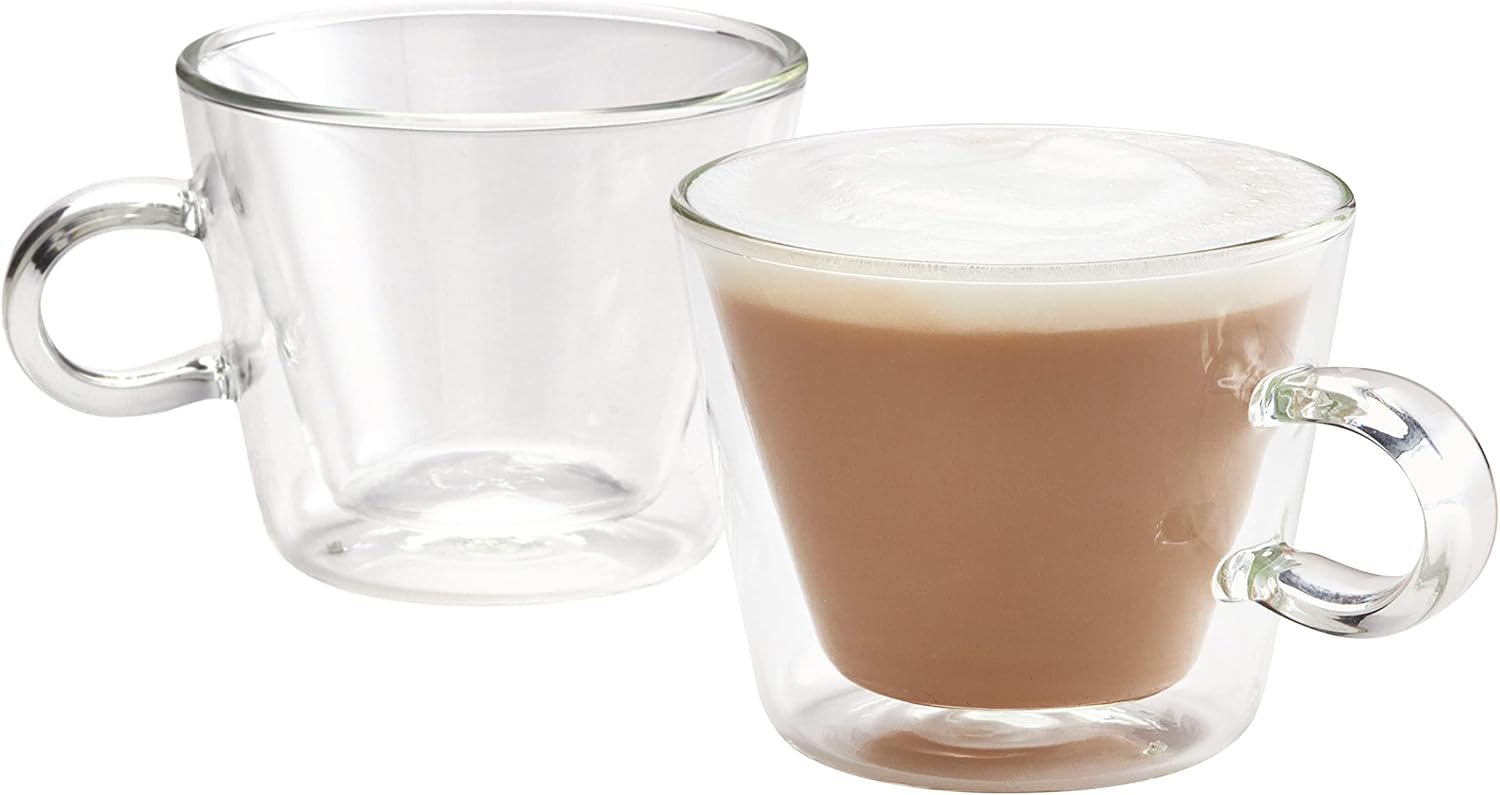 Enjoy barista-style coffee at home with our elegant double-walled glass mugs