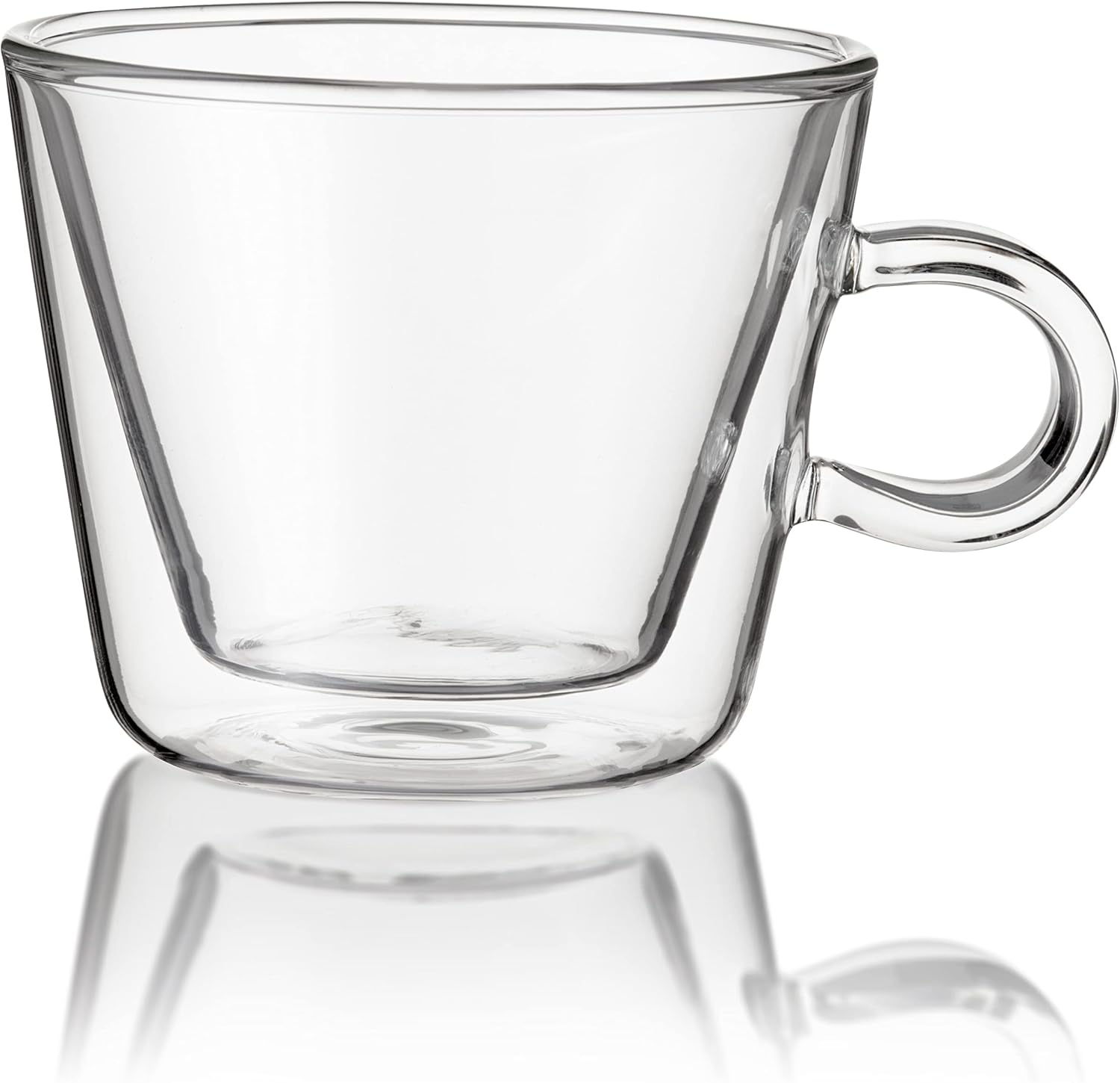 Judge Duo Flare Set of 2 Cappuccino Glass Coffee Cups with Handle, Hollow Vacuum Sealed, Heat Resistant, 250ml Cappuccino Glass
