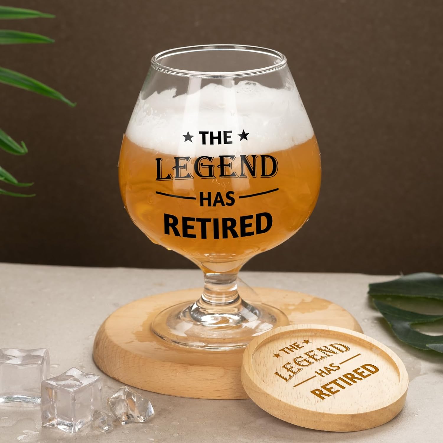 KAAYEE Retirement Gifts for Men, Retirement Beer Glass – The Legend HAS Retired-Funny Gifts for Men, Ideas Retiring Presents for Grandpa, Dad, Husband, Friend or Colleague, 510ml with Coaster