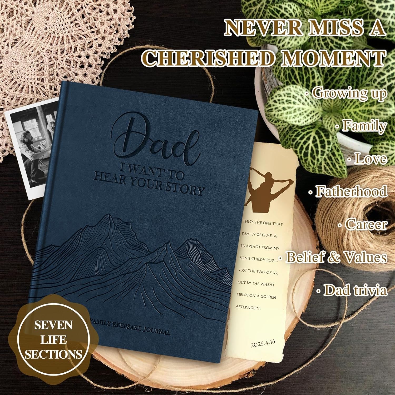 Crafted with Premium Materials: Featuring a durable leather cover with imprinting pattern and 120gsm non-bleeding paper, this dad memory book journal offers a premium writing experience, ensuring that each story is beautifully preserved for years to come