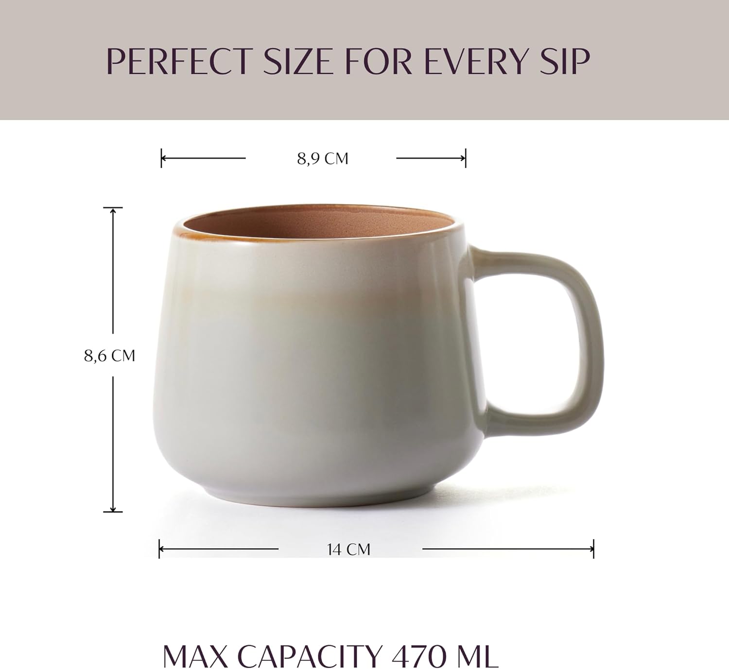Versatile Charm for Every Décor Style: Featuring a handcrafted look with a unique reactive glaze, our rustic coffee mugs blend effortlessly into boho, farmhouse, modern, and minimalist aesthetics. The neutral color palette complements any kitchen décor and adds a touch of nature-inspired beauty to your table.