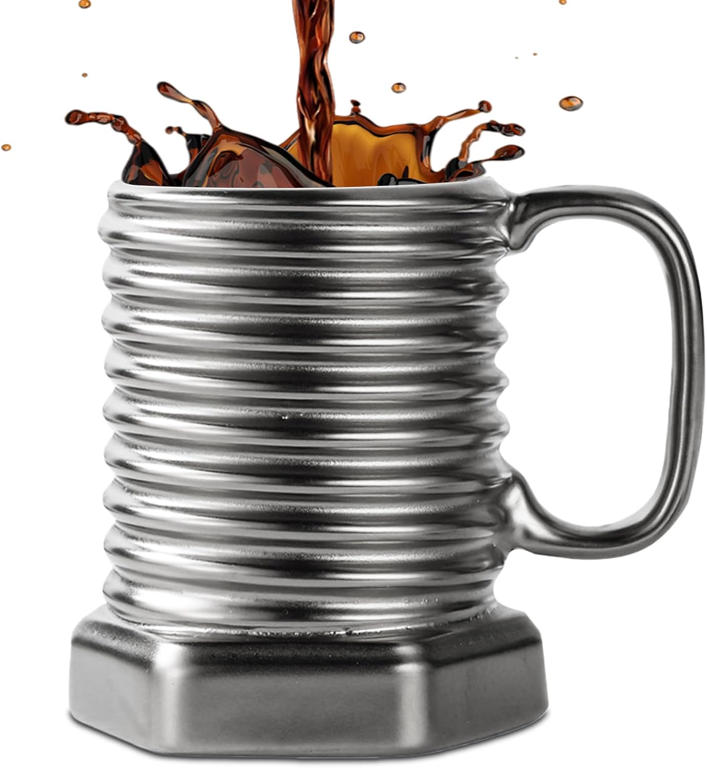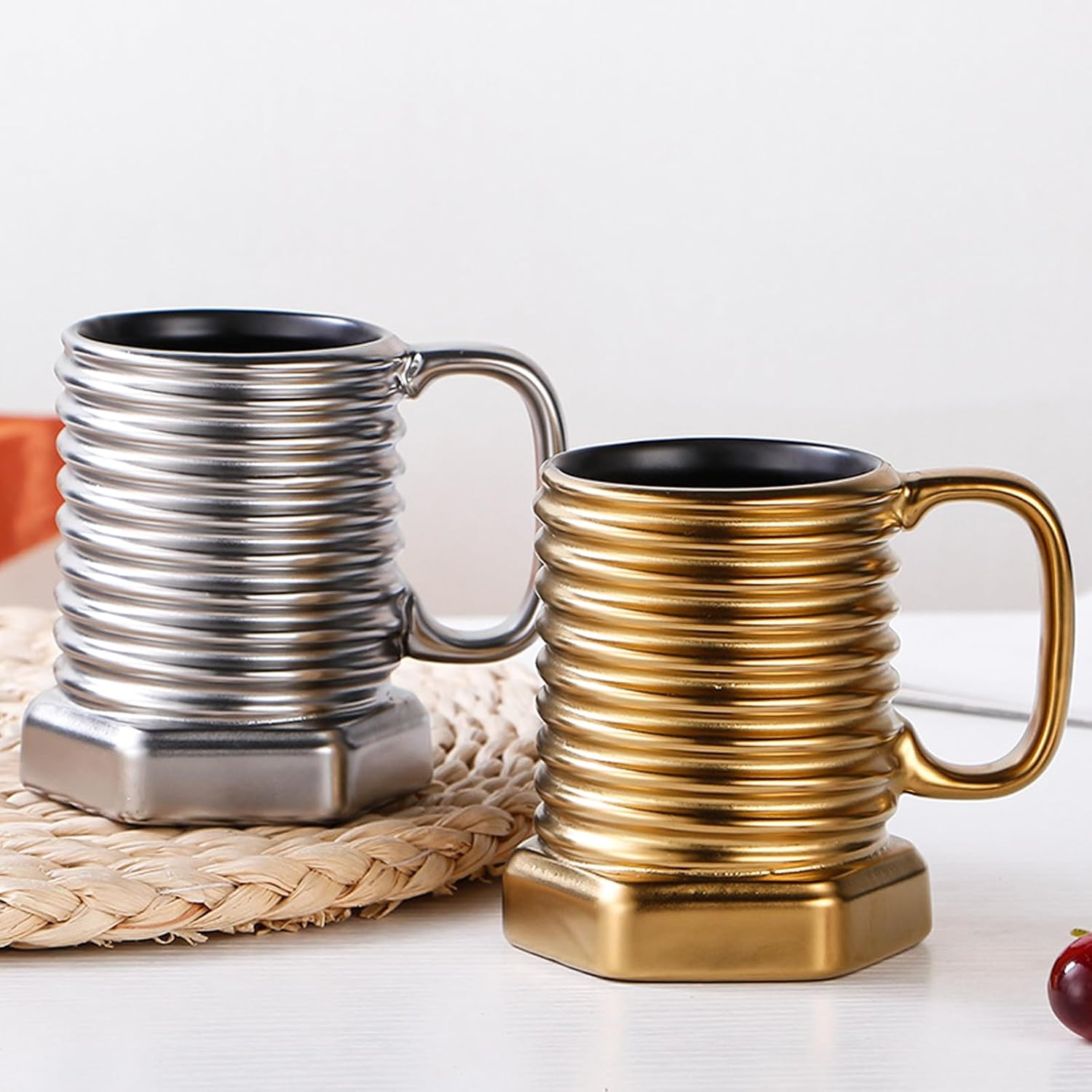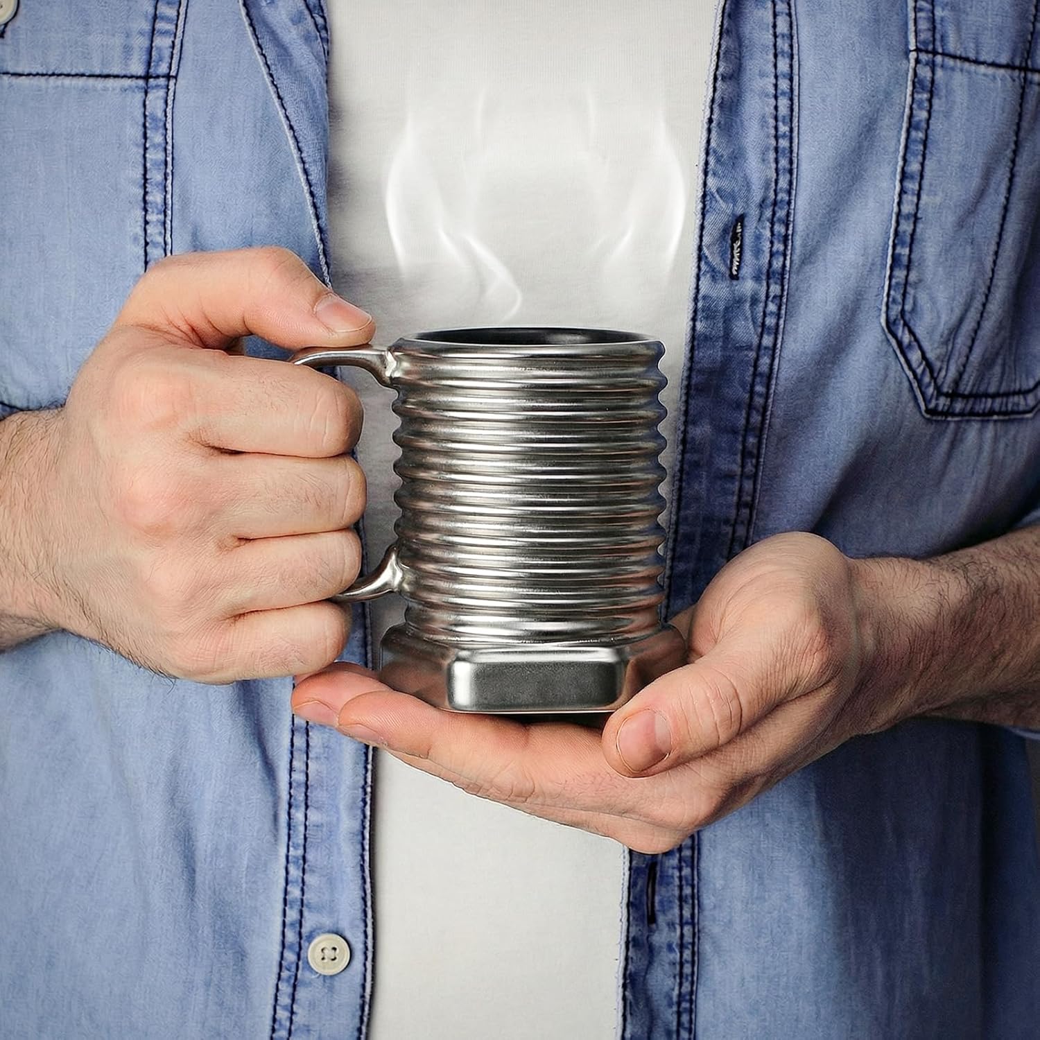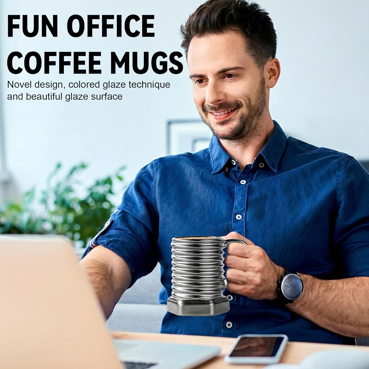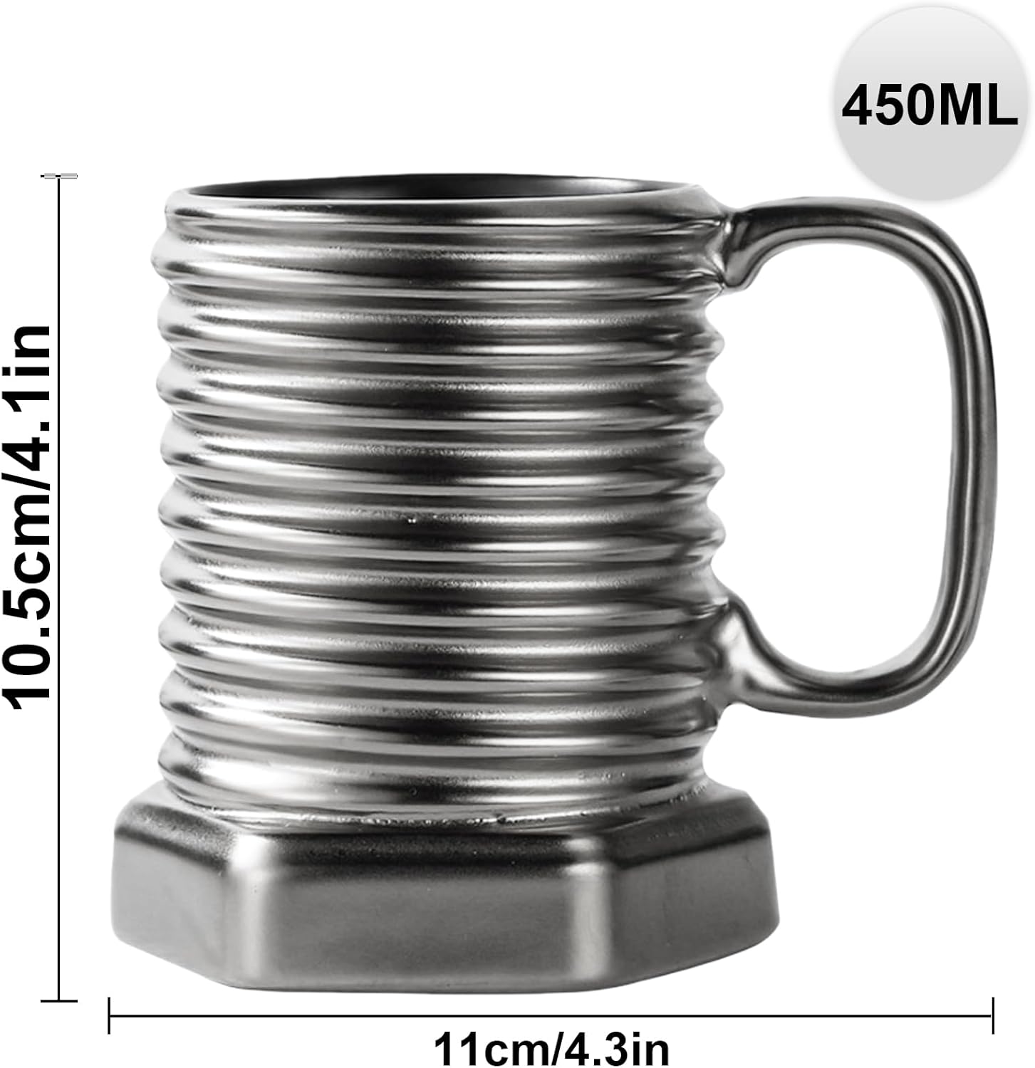 ⚙⚙【INDUSTRIAL BOLT-INSPIRED DESIGN】Shaped like a solid metal bolt, this mug celebrates the rugged beauty of engineering and heavy industry. The ribbed “thread” design adds 3D grip texture and a unique handcrafted feel, making it a striking desk accessory for mechanics, builders, engineers and anyone who loves industrial aesthetics.