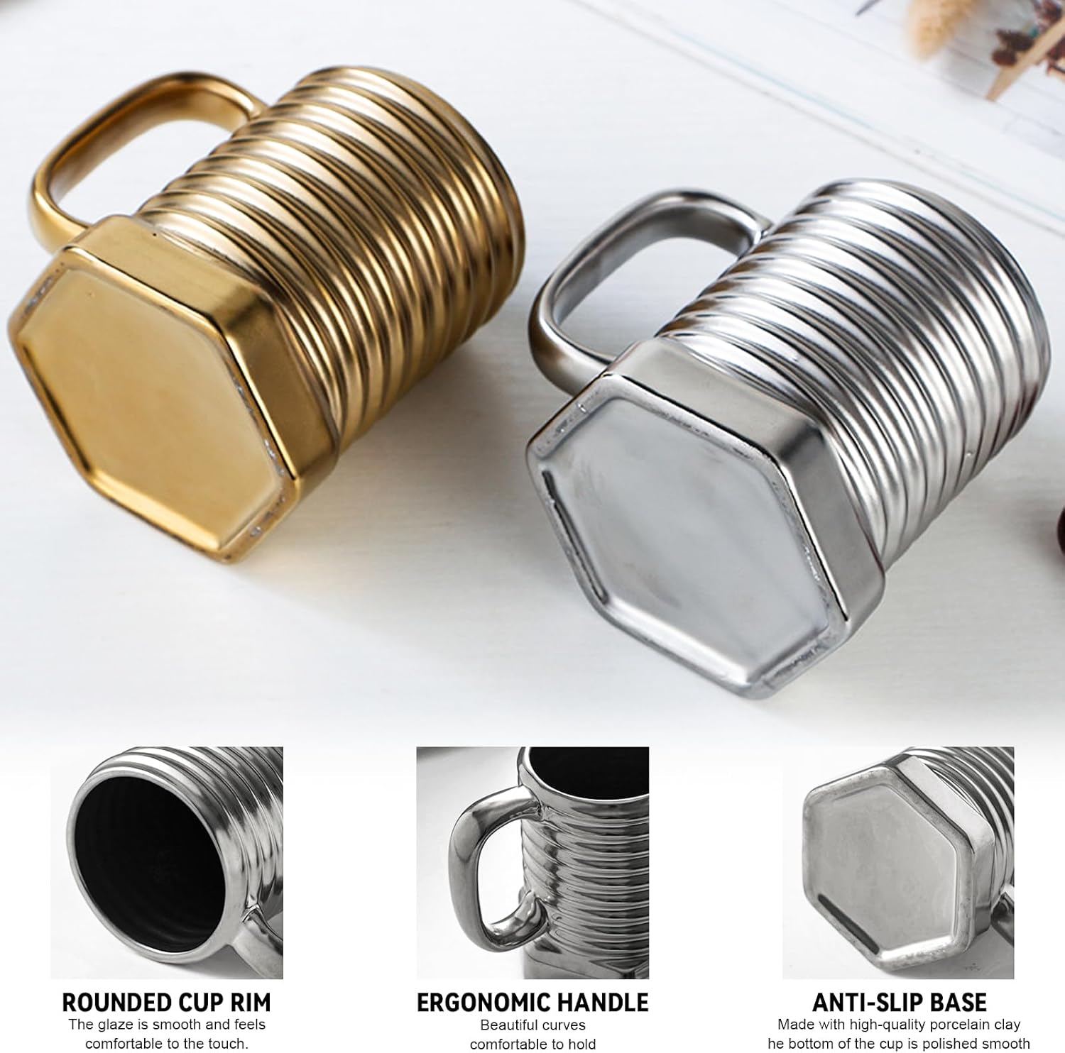 ⚙⚙【HIGH-QUALITY CERAMIC WITH METALLIC FINISH】Crafted from durable ceramic and fired at high temperature, the mug features a premium metallic-style glaze that mimics real hardware materials. Lead-free, cadmium-free and food safe, it maintains vivid colour without fading, while its smooth interior makes every drink enjoyable and easy to clean.