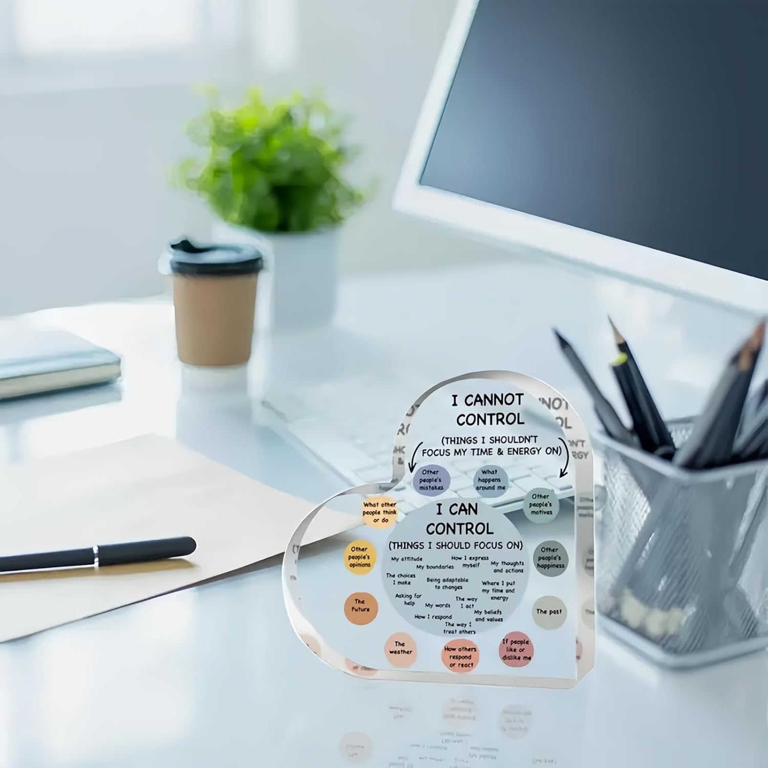 2.”I can control” ornaments decor is crafted from acrylic,heart-shaped gift is clearly printed,ensuring the desk ornament durability and sturdiness.