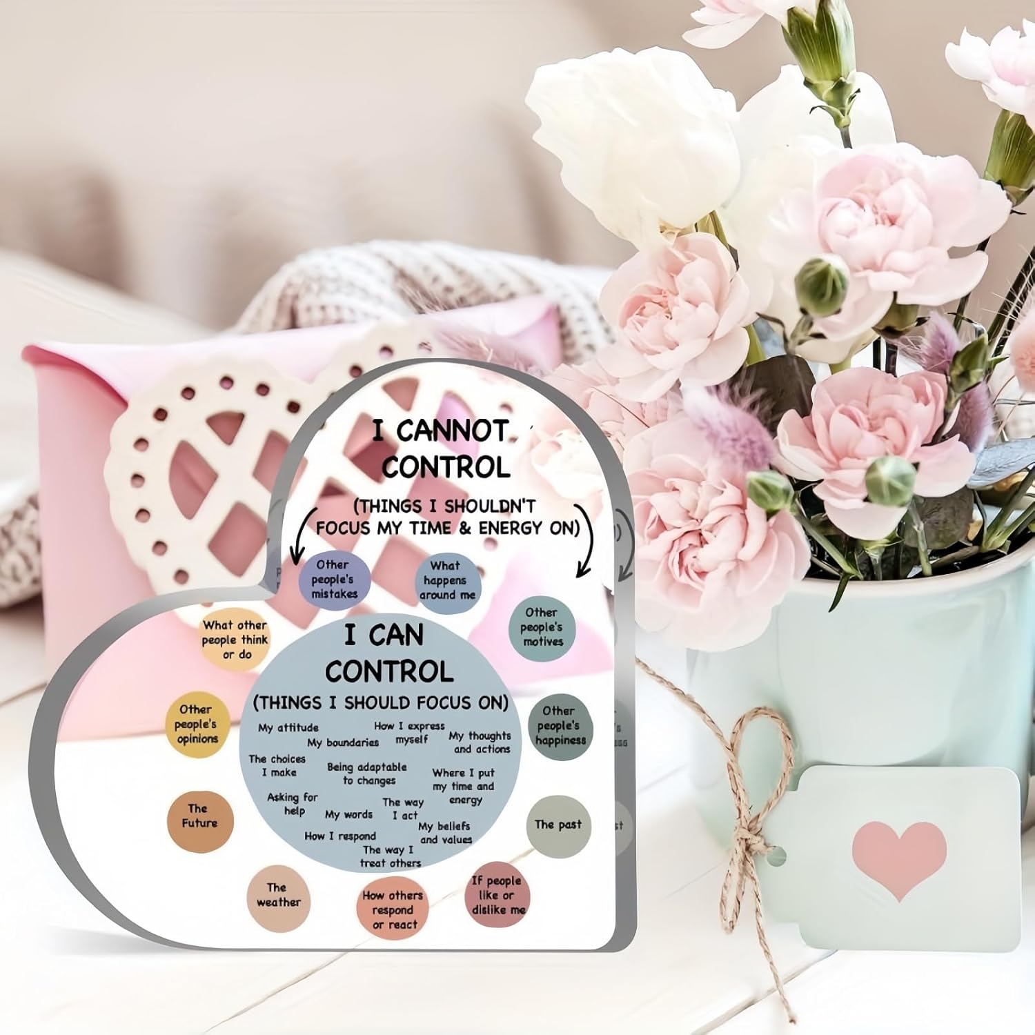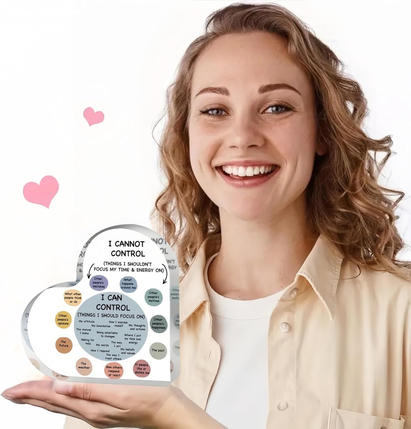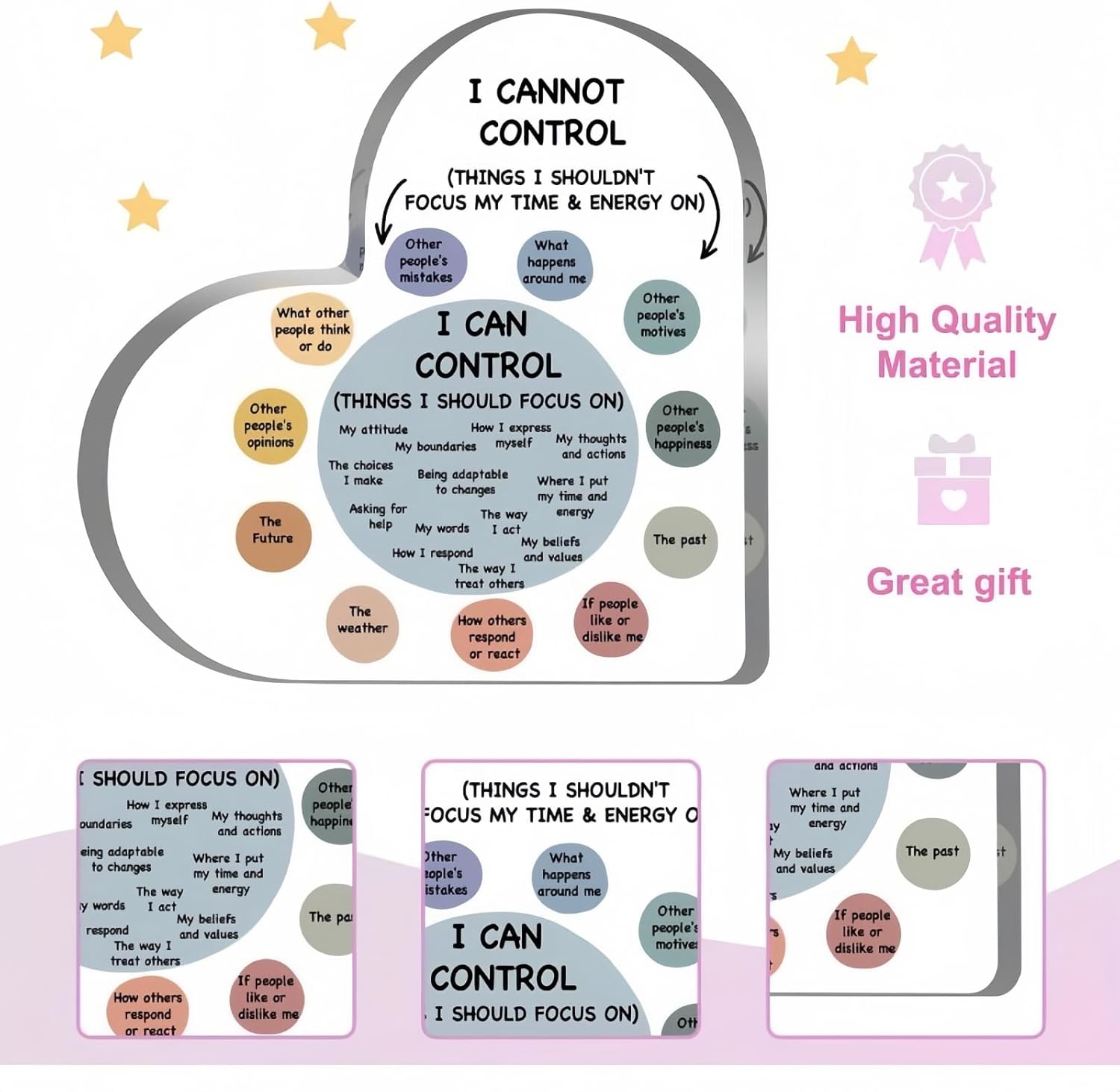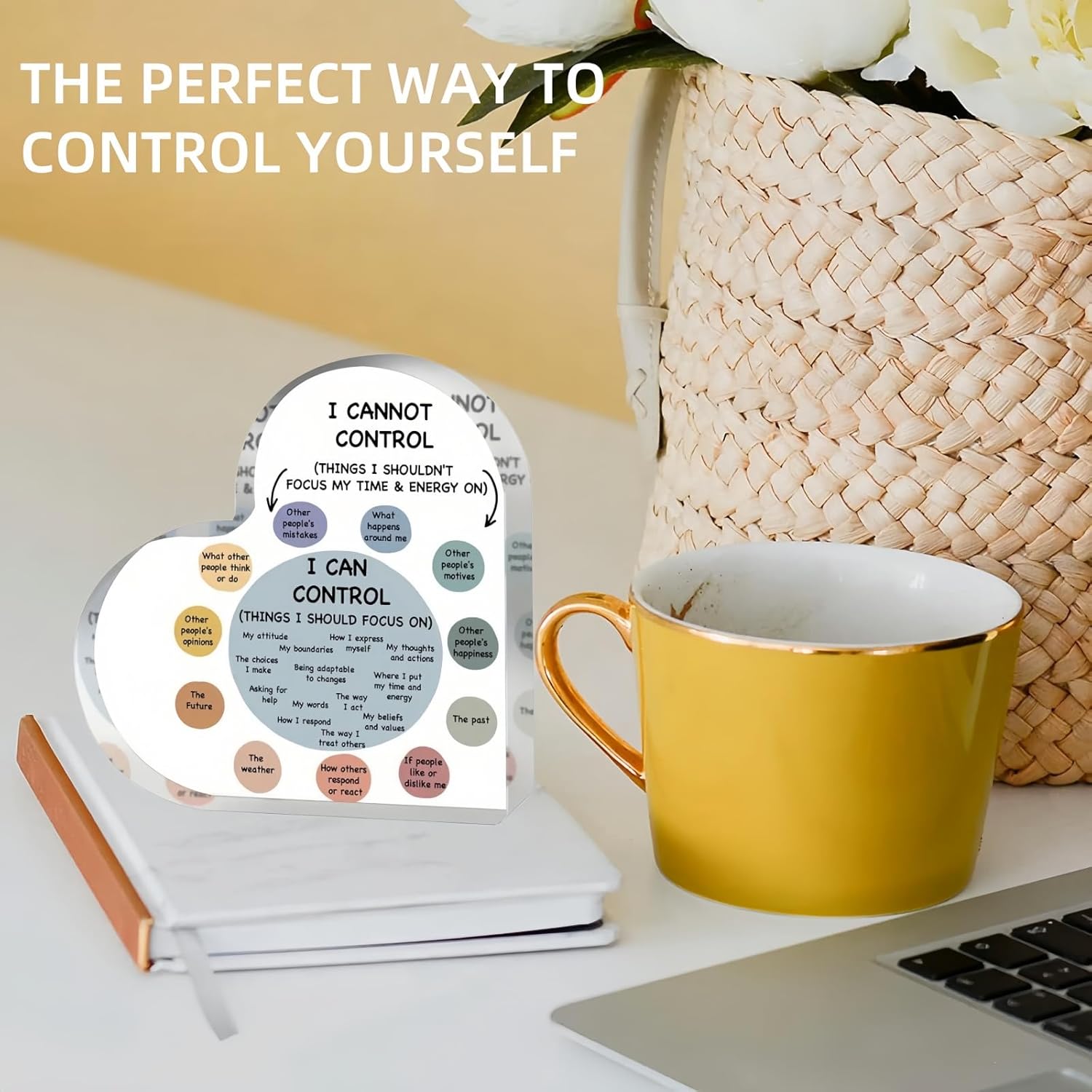 Mental Health Heart Affirmation Sign – Acrylic Desk Decor – I Can Control Ornaments for Therapists