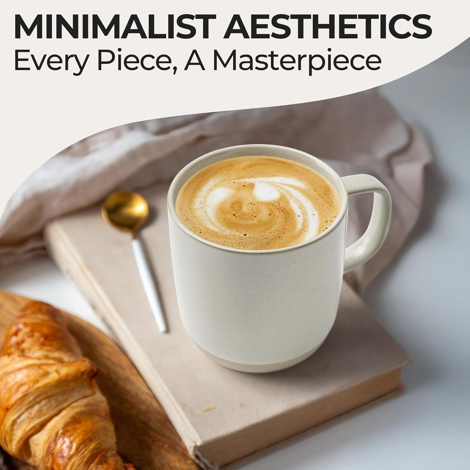 𝐔𝐍𝐈𝐐𝐔𝐄 𝐀𝐍𝐃 𝐌𝐎𝐃𝐄𝐑𝐍 – Each ceramic coffee mug features a minimalist and timeless two-tone design. The cozy cream colors make these tea mugs a perfect gift for design enthusiasts. The large handle of our coffee mug ensures a comfortable grip. They also feature an easily stackable design for efficient storage.