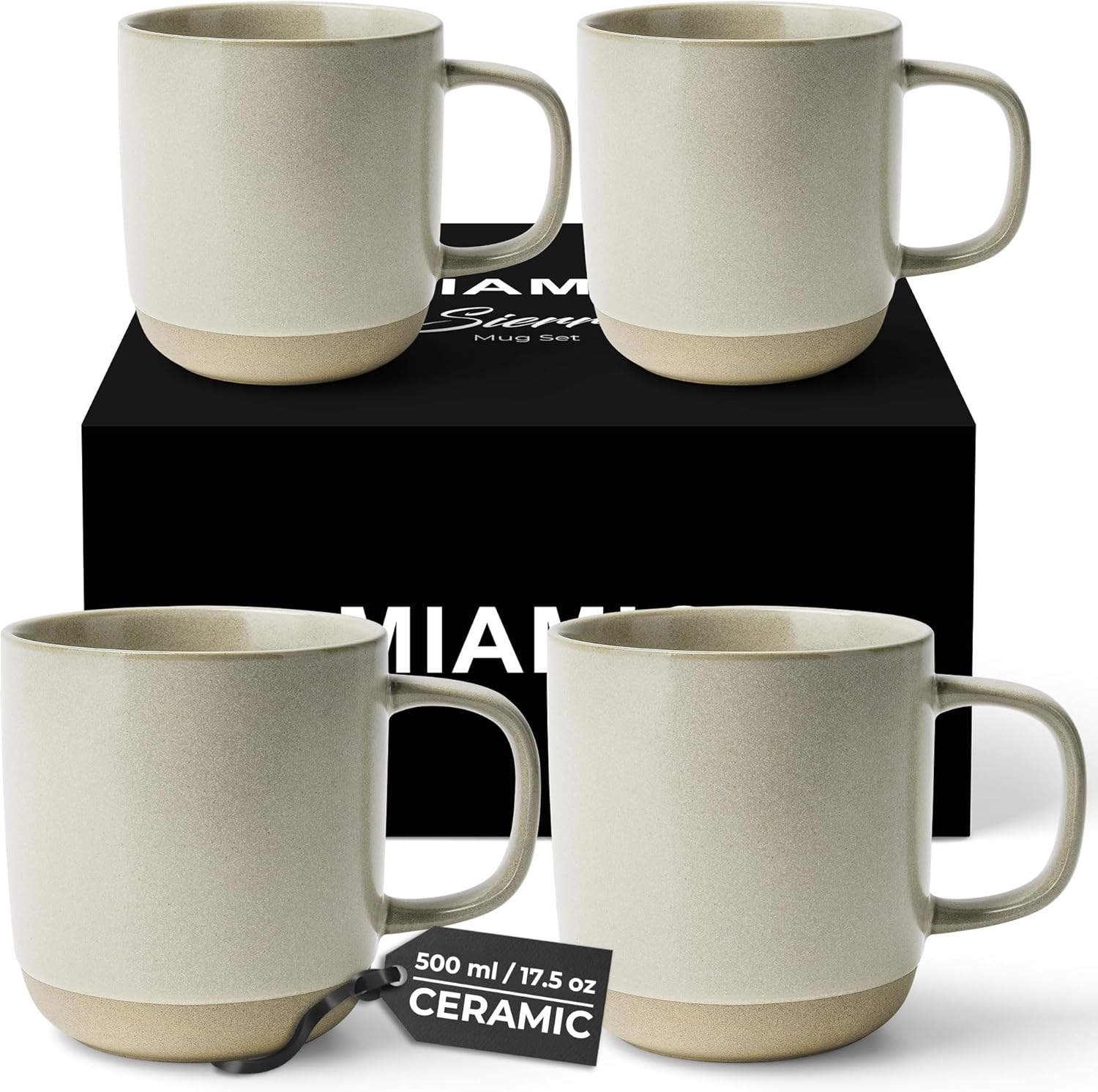 𝐂𝐎𝐅𝐅𝐄𝐄 𝐌𝐔𝐆 𝐒𝐄𝐓 – This beautiful ceramic mug set from MIAMIO includes 4 large coffee mugs, each with a capacity of 500 ml. These big cappuccino mugs are perfectly sized to hold just the right amount of your favorite beverage. Each mug is made with a robust wall design to keep your coffee or tea hotter for longer.