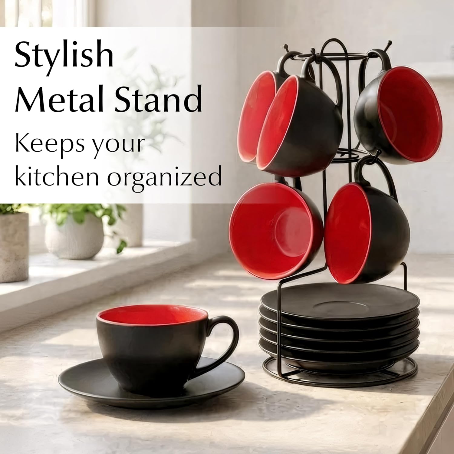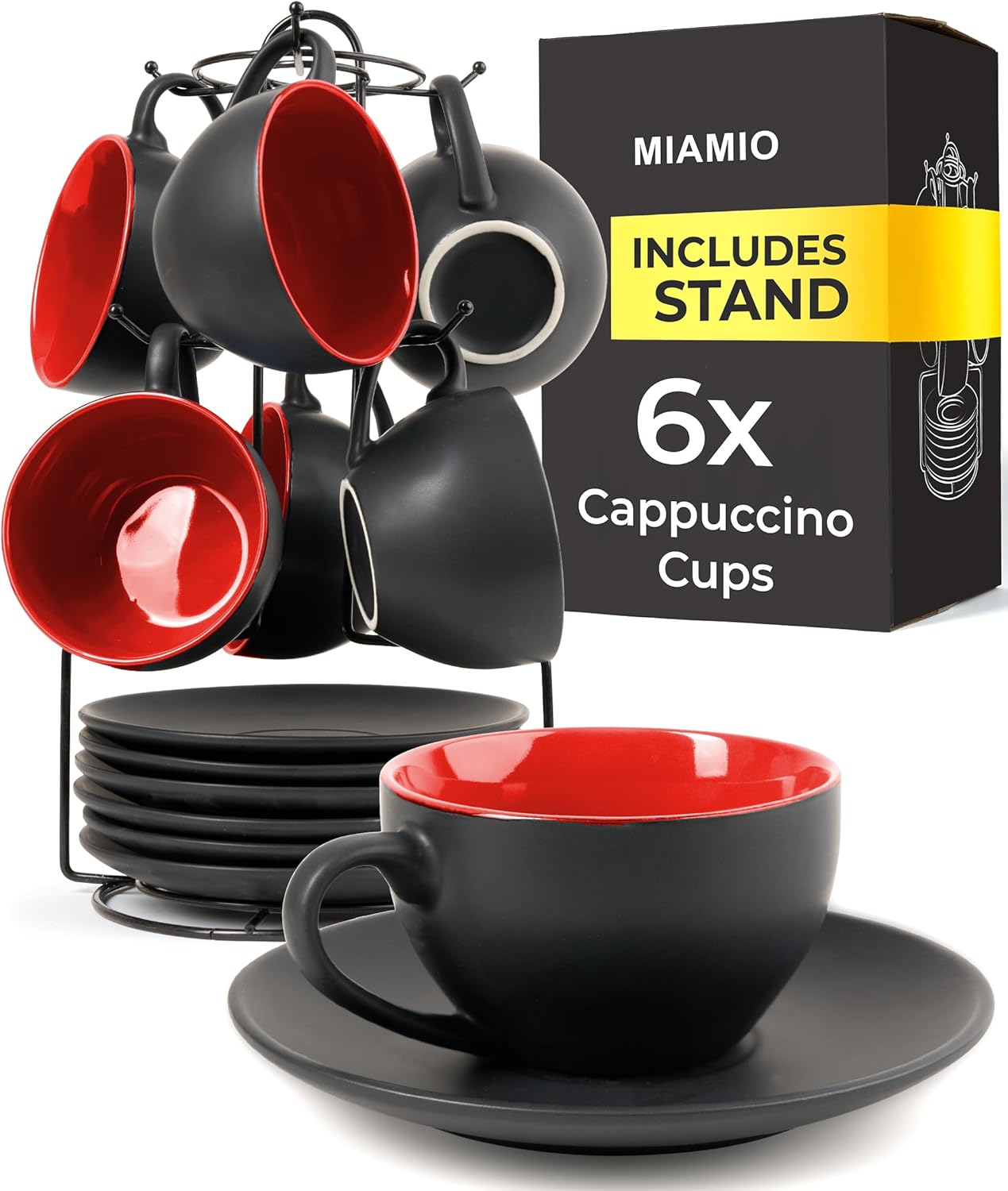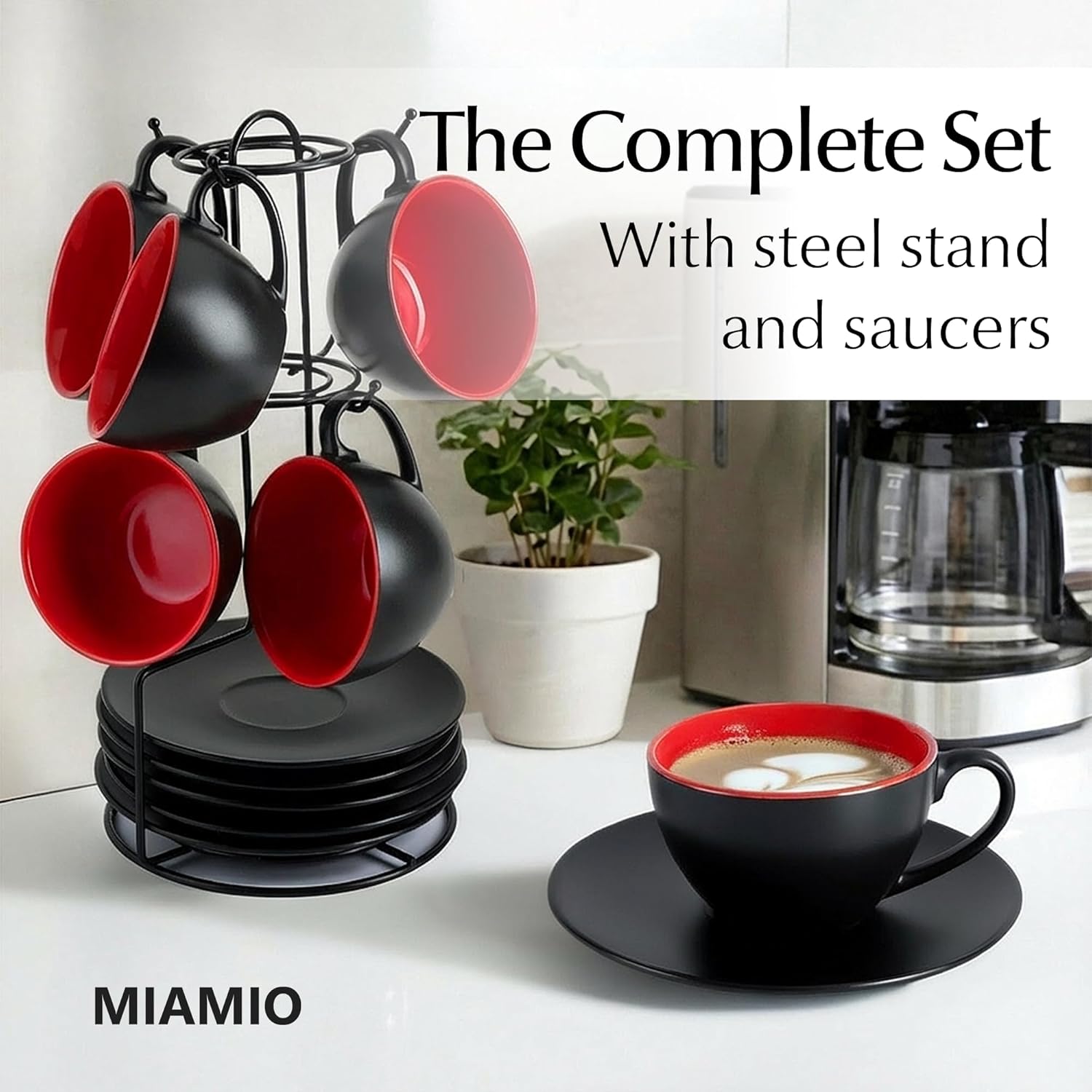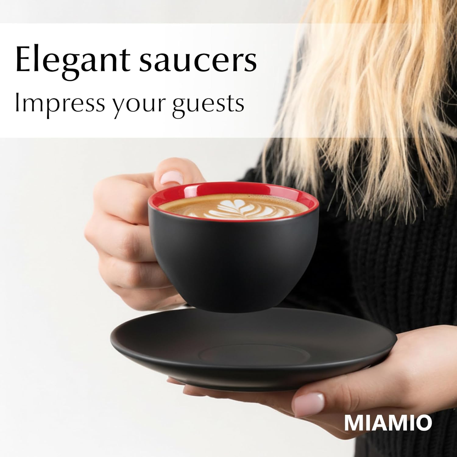 𝐄𝐘𝐄 𝐂𝐀𝐓𝐂𝐇𝐄𝐑 – With the MIAMIO cups, every cappucino is an experience. The modern, matt black exterior gives the colourful cup a sophisticated and high-quality look. With their shiny bold colour inside, they also hold a nice colourful surprise. A stand for the cups is also included, which you can use to present our cappucino cups in your kitchen.