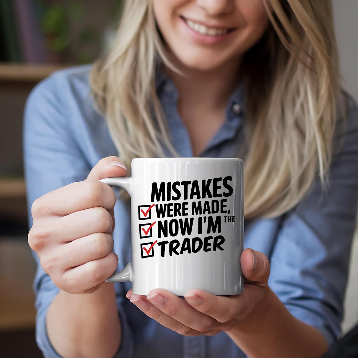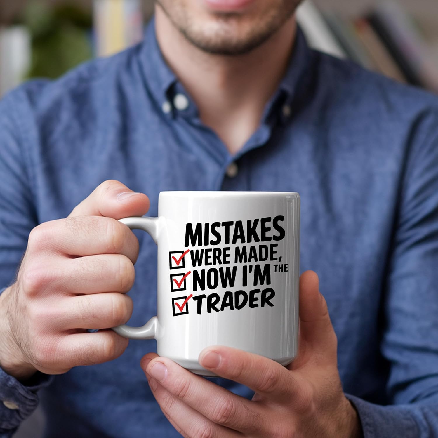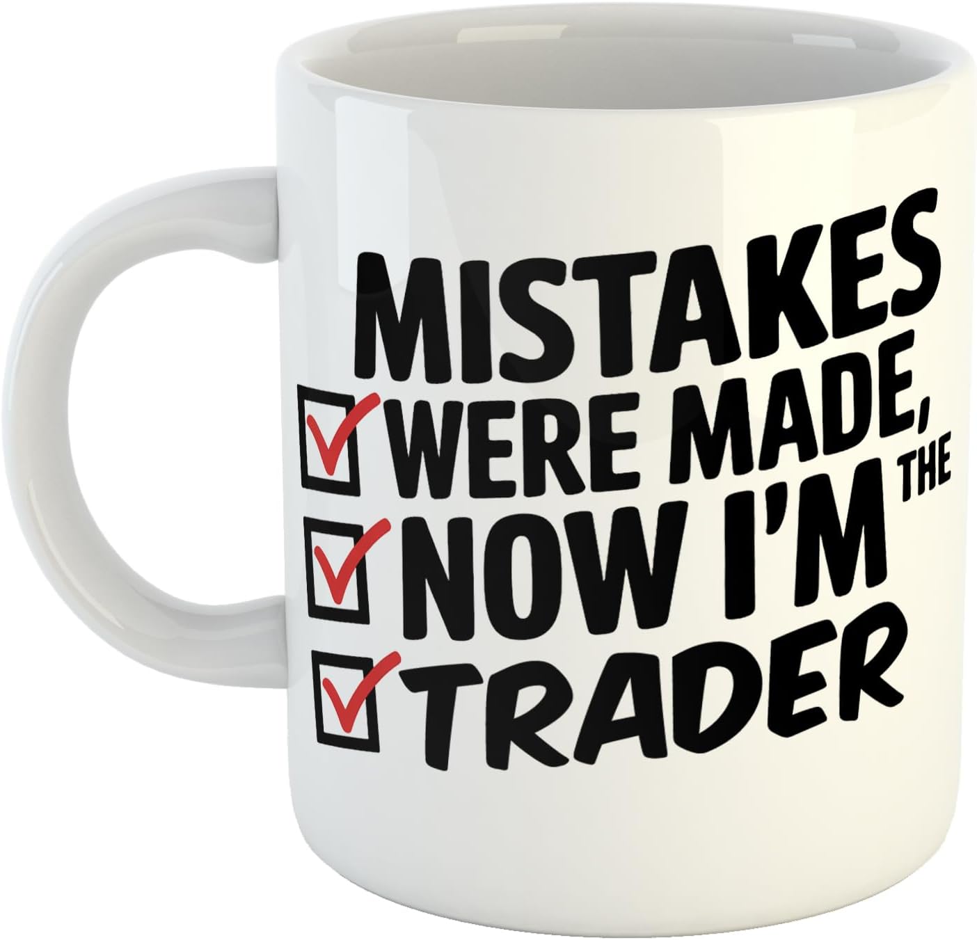 Laugh your way through the workday with our “Mistakes Were Made, Now I’m Trader” Funny Coffee Mug! This 11-ounce ceramic mug is a hilarious nod to the career journey of any Trader, featuring a bold design with checkmarks that’ll spark smiles. Perfect for coffee, tea, or any drink, this dishwasher and microwave-safe mug is a must-have for the office or home. Surprise your favorite Trader with this witty gift that’s sure to be a conversation starter!