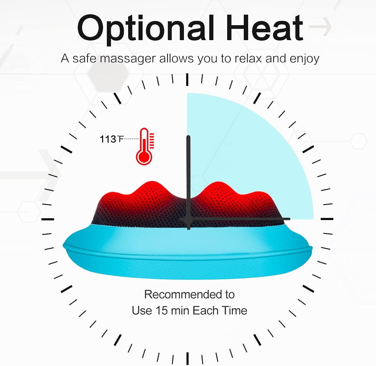 4 deep-kneading rotating Shiatsu Massage nodes change directions every minute, work wonders to relieve aches, knots and muscle tension.