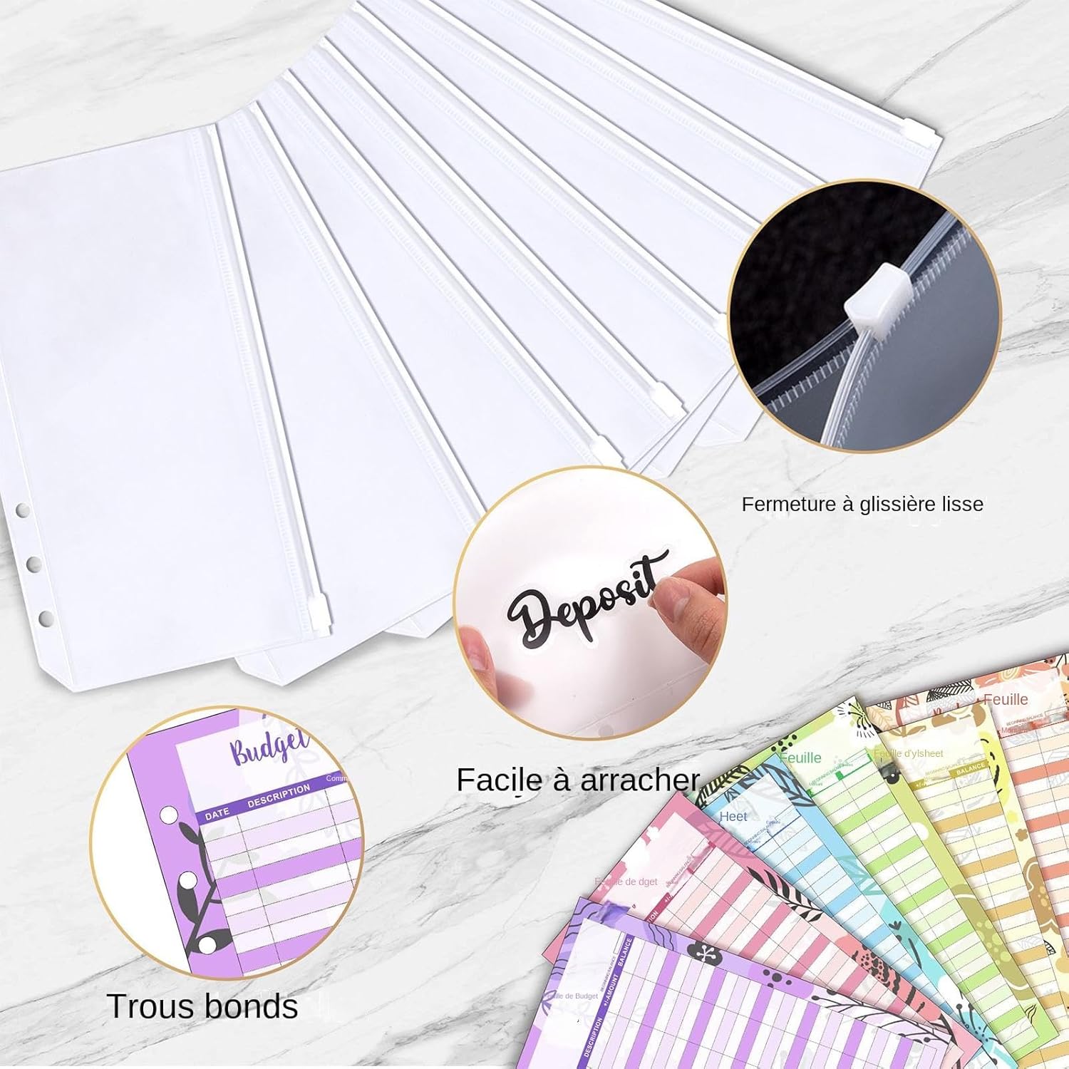 Efficient Cash Management: Secure zip pockets and twelve budget cards ensure secure storage, organized tracking of home finances and removable rings for customizable use.