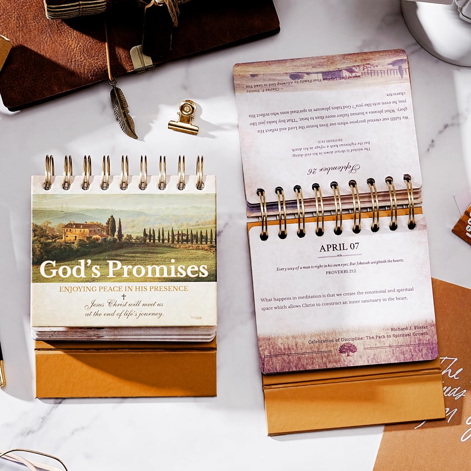 Motivational Calendar – Desk Calendar with Inspirational Thoughts, Christian Gifts, Religious Gifts for Women and Men, 4.7” x 5” Flip Calendar, God’s Promises Perpetual Calendar, Christian Decor