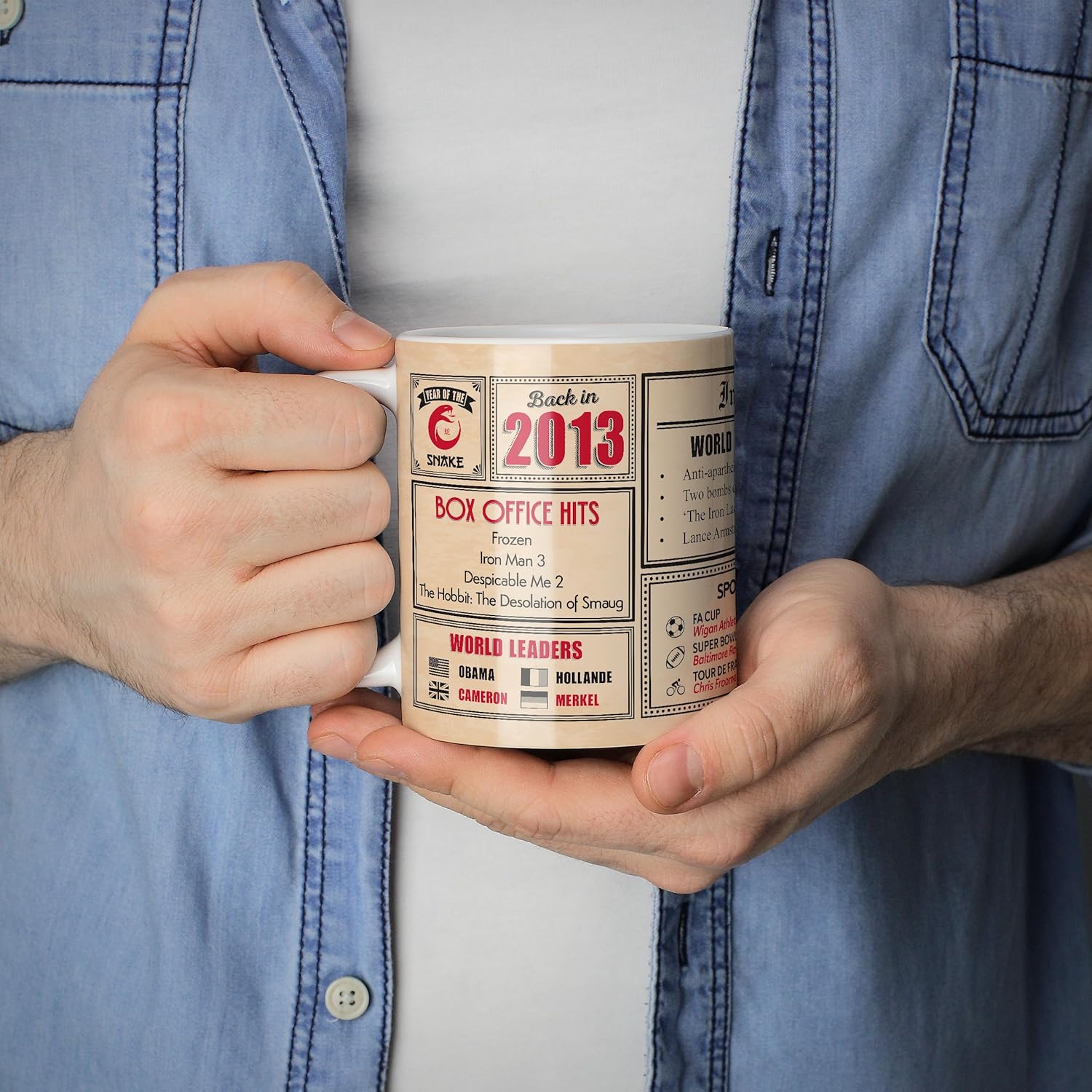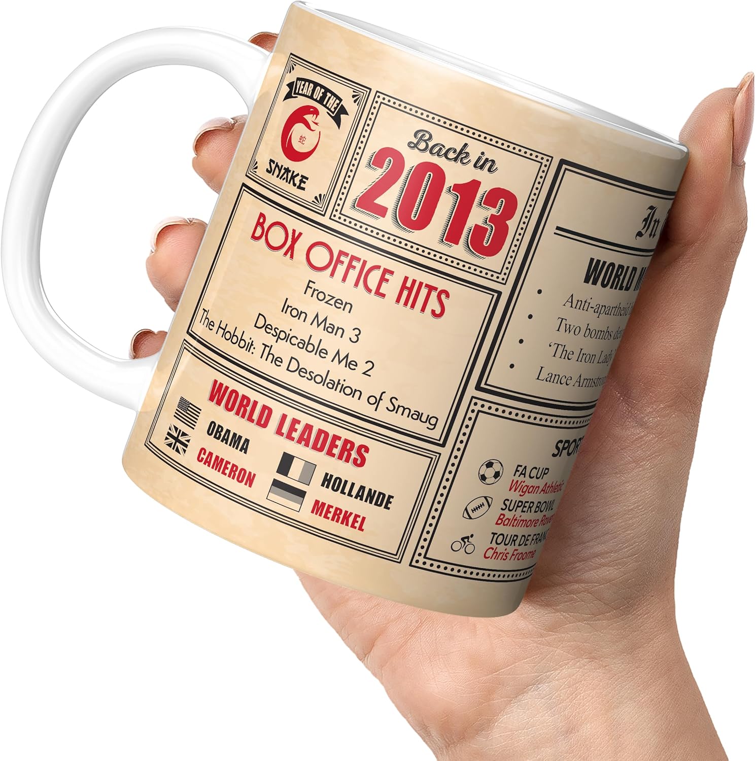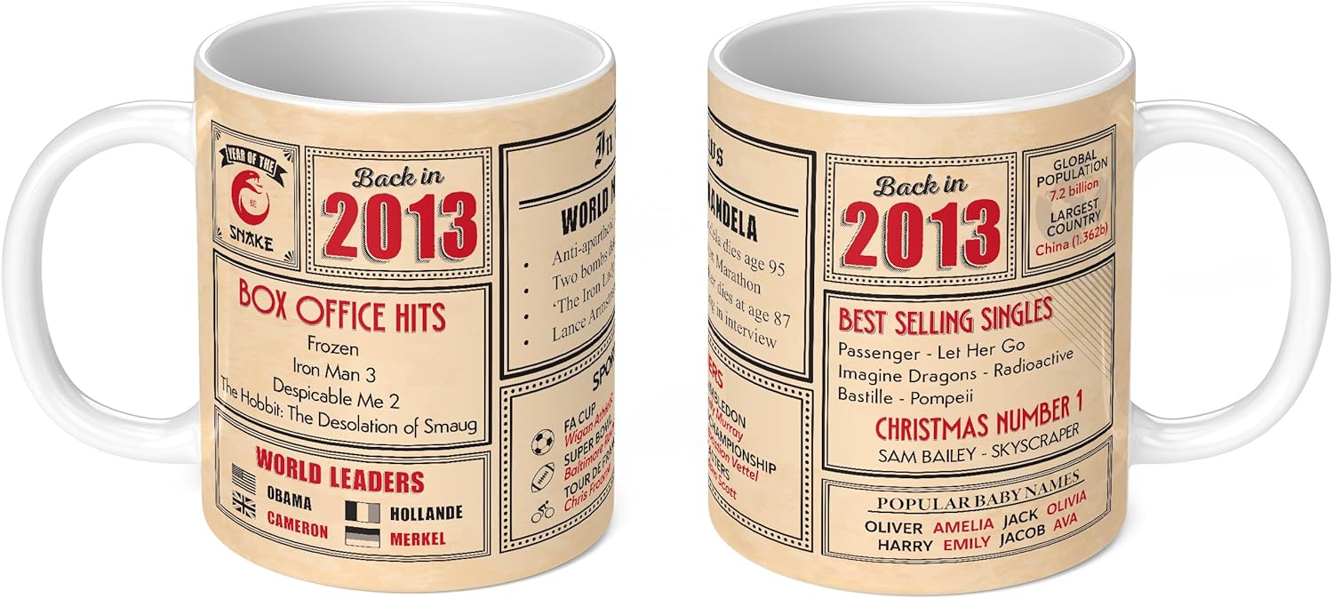 The mug not only serves as a functional item but also takes the recipient on a nostalgic journey through significant events and pop culture from 2013.