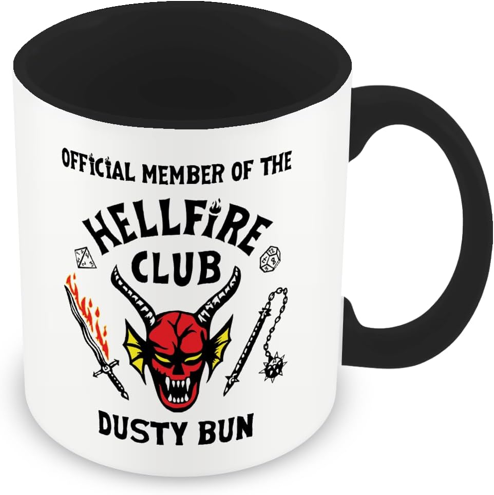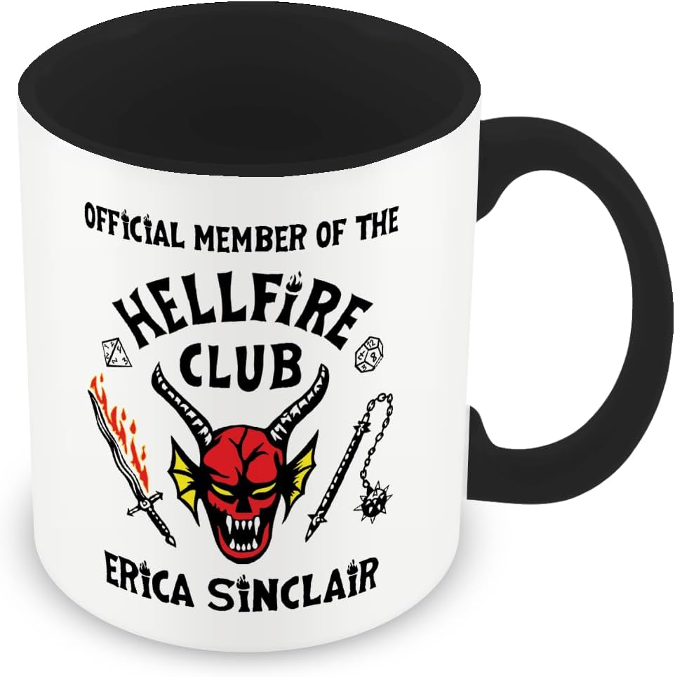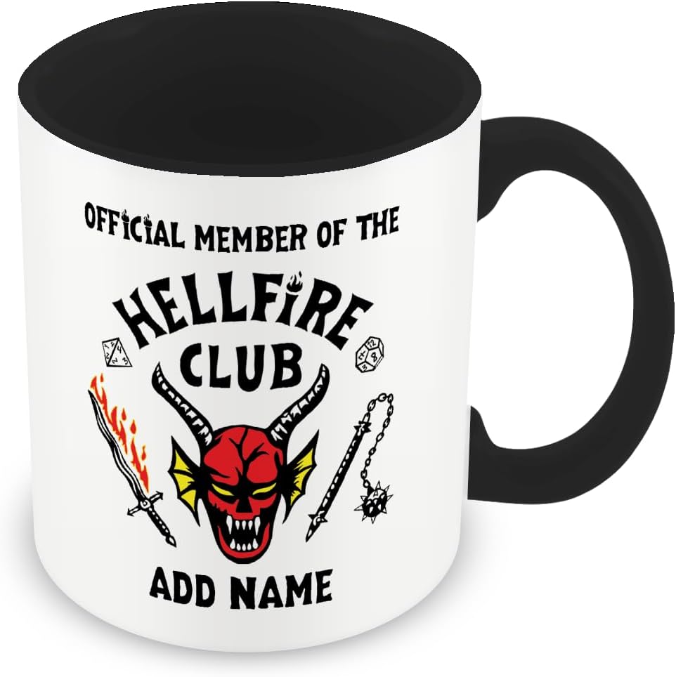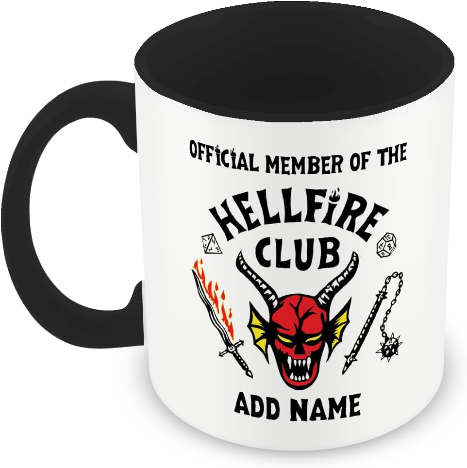 MUGGZ Personalised Strange Thing Mug – Hellfire Club Logo and Actual Font – Black Handle/Inner – Custom Fan Gift Cup