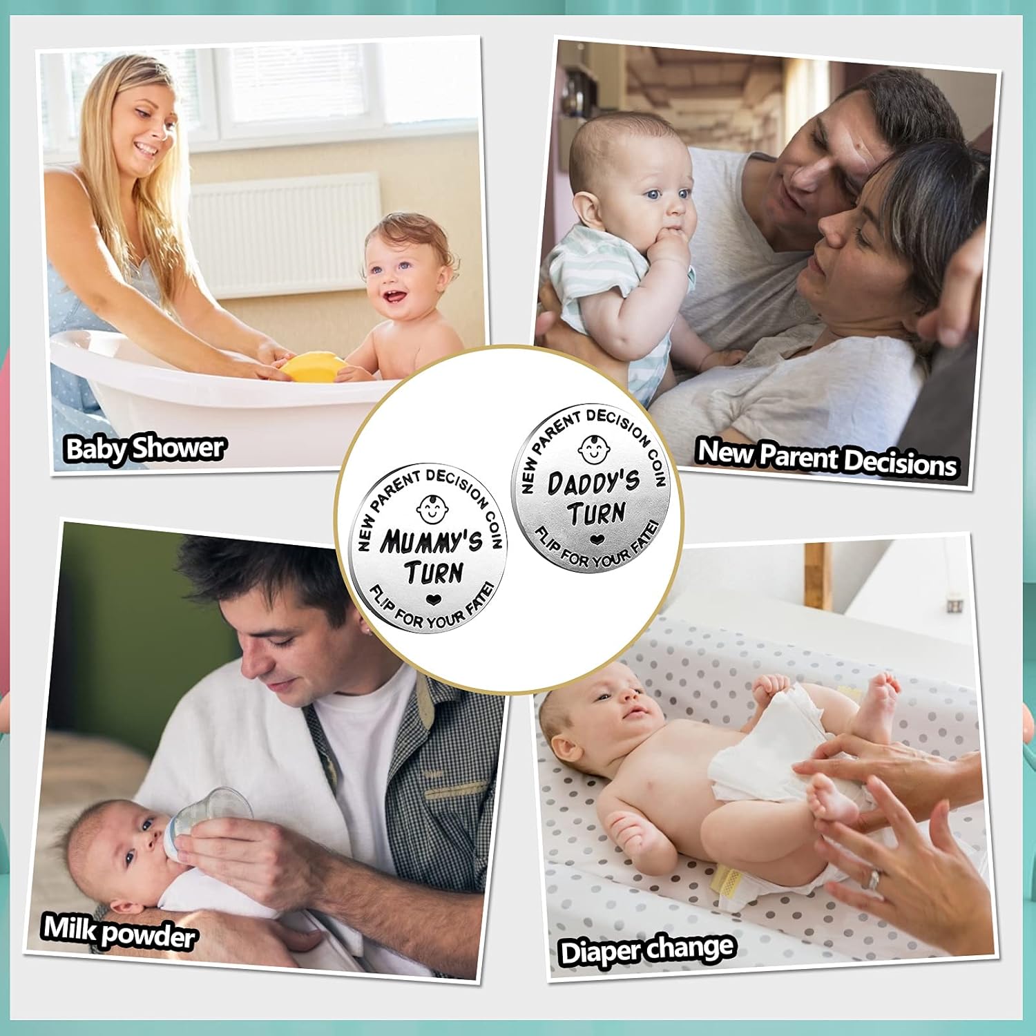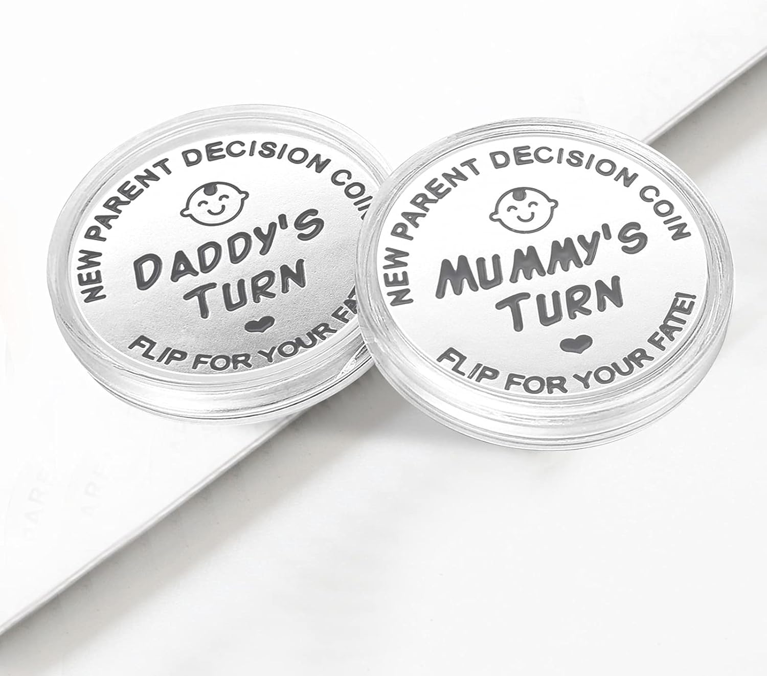 👶【Various interesting decisions】One side of the coin has “Daddy’s Turn” written, and the other has “Mummy’s Turn” written. When you’re ready to change your baby’s diaper, feed the milk, take a bath, get dressed, pick out new clothes, etc., let the coin tell you whose turn it is to start flipping for your fate now. Everything will be fair, and the process will be full of meaning, happiness, and fun.