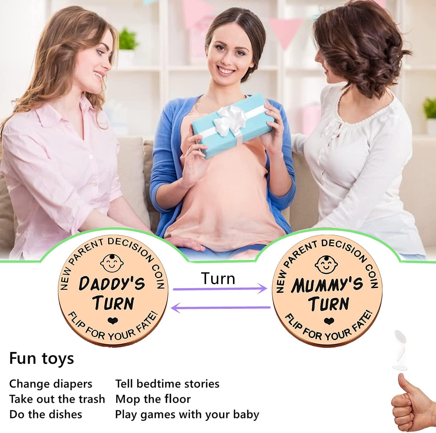 💑【New Parent Gifts】💑:Funny newborn baby gift decision coin for new parents who are going to start a new journey.Our decision coins can help you make decisions easily and interestingly.