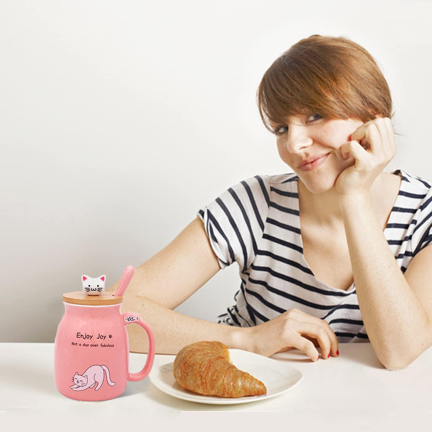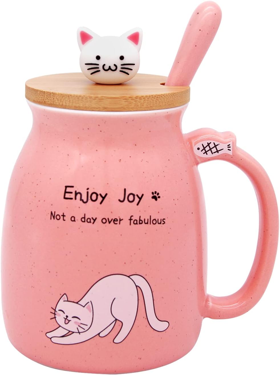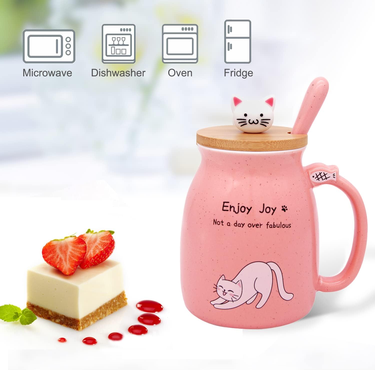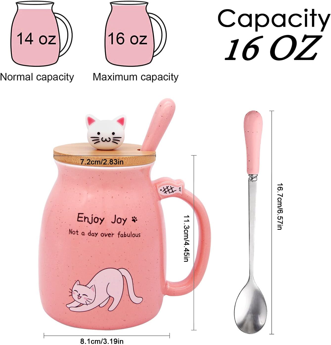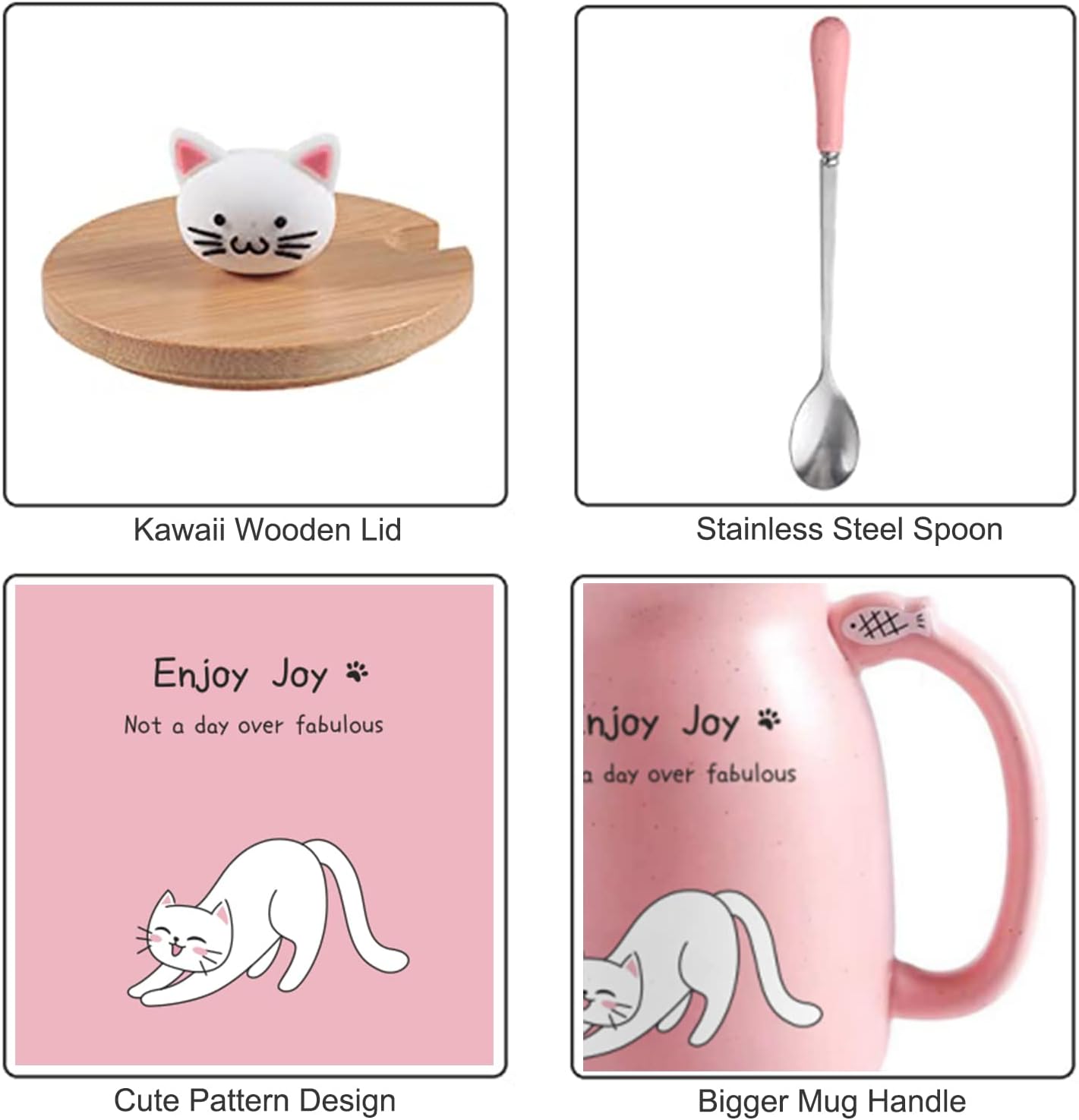 Made of High Quality Ceramic – This cute cat cup is well made at 1200℃-1400℃. Our pink cat cup is delicately handcrafted and will not easily scratch off, comes with a kawaii kitty wooden lid and ceramic, 304 stainless steel spoon.